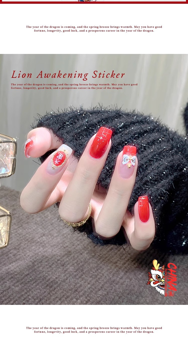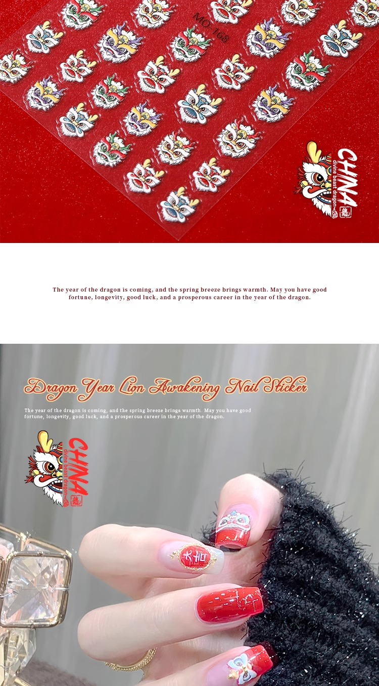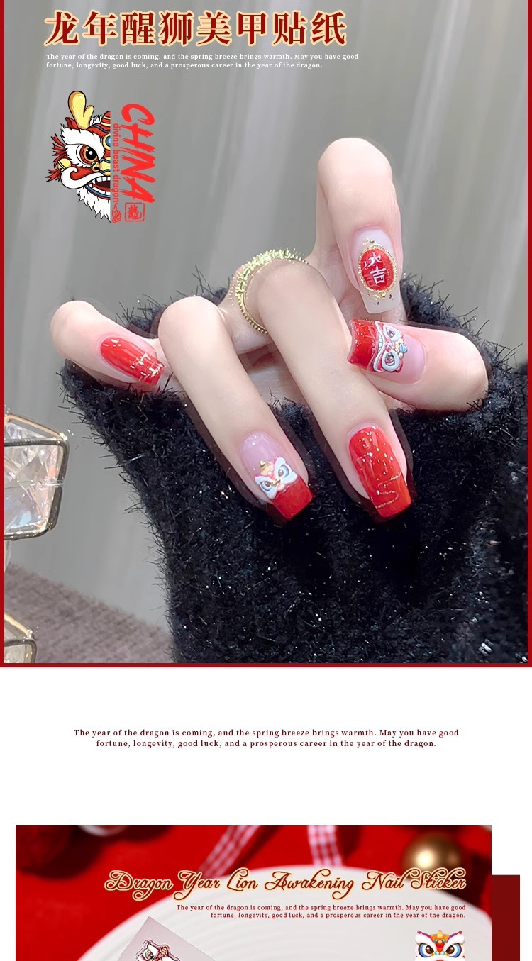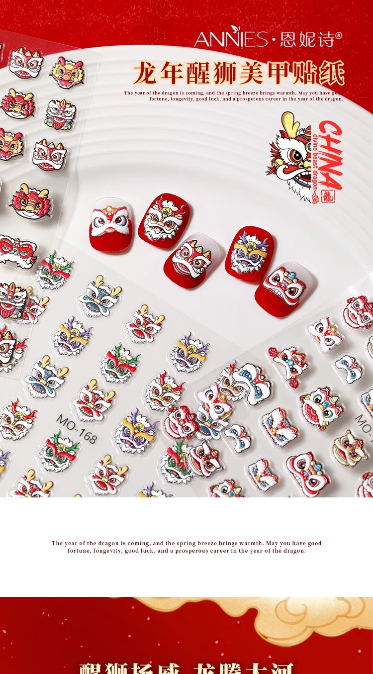 龍年覚醒ライオンネイルシール2024招財小乳龍新流行旧正月爪装飾品メーカー卸売り