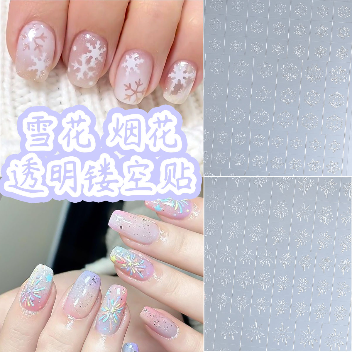 2025年新款雪花美甲贴纸喷绘造型圣诞雪花烟花贴纸指甲装饰品批发