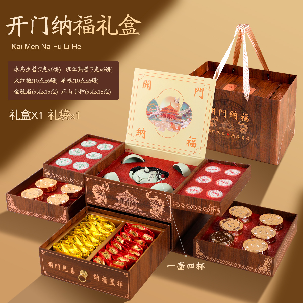严选开门纳福六大茗茶红茶金骏眉乌龙茶单枞普洱茶茶叶高端礼盒装