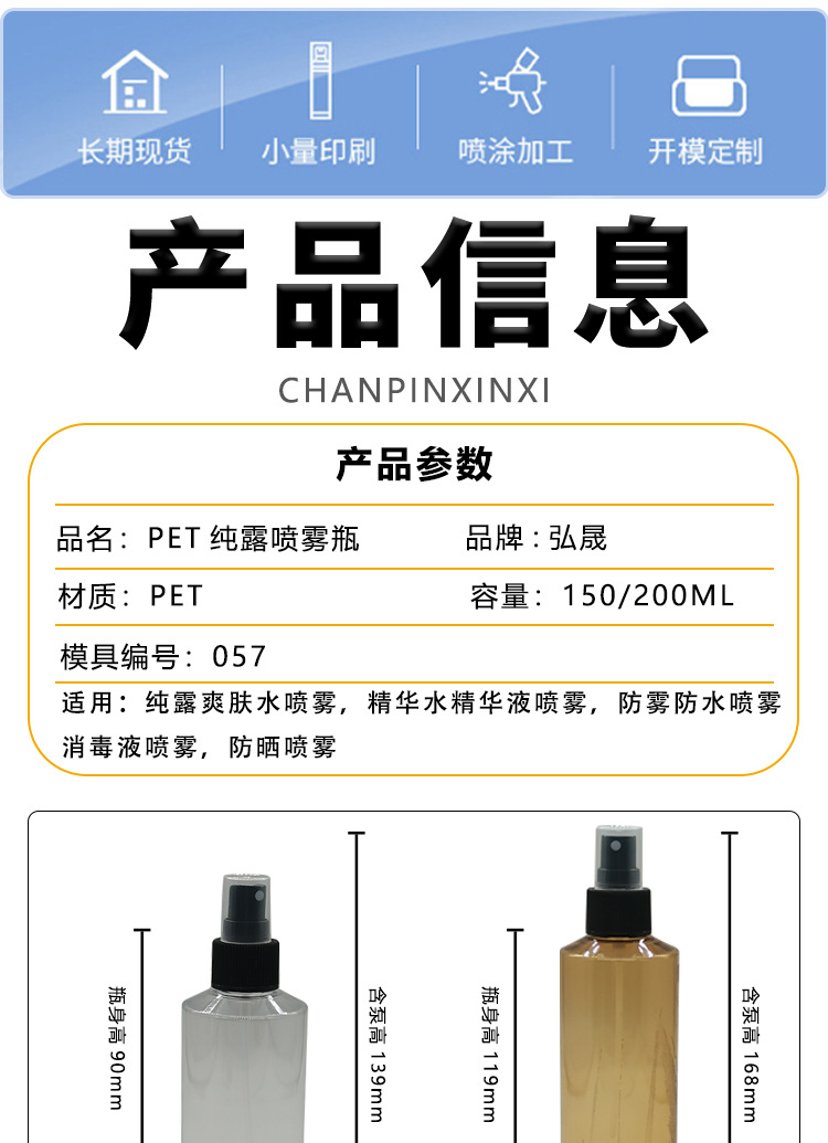 卸売り150ml 200ml純露スプレーボトル日焼け止め保湿爽やかな水スプレーボトル衣類雰囲気除去スプレーボトル