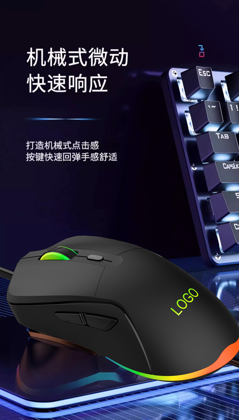 プライベートモデルの越境人気ゲーム用有線マウス、メカニカルRGB軽量eスポーツゲーム用発光マウス
