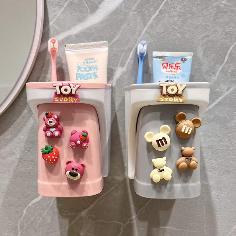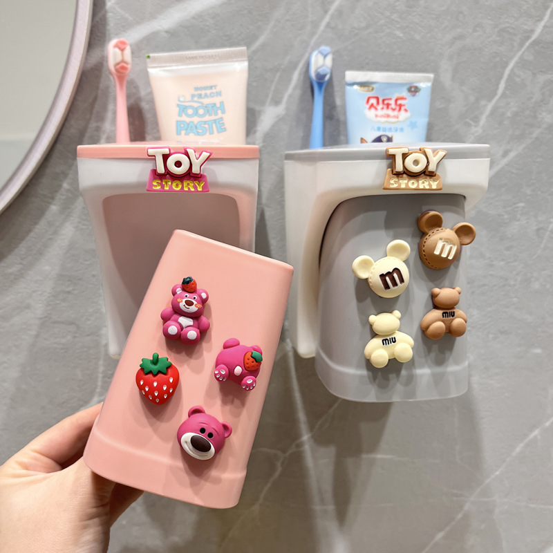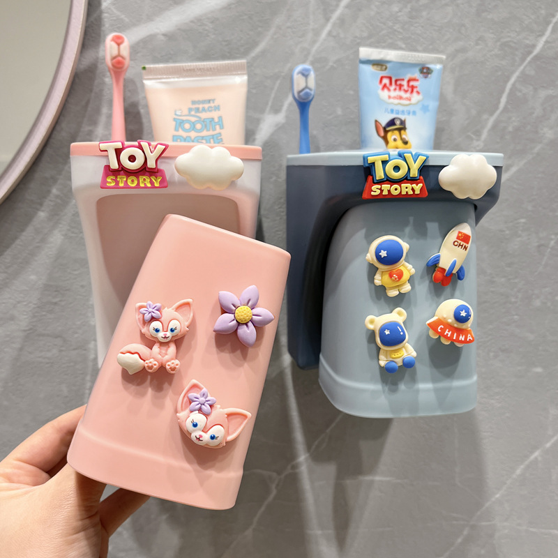 子供用歯磨き粉歯ブラシホルダー穴なし壁掛けかわいい漫画クリエイティブマグネット式うがいコップ家庭用