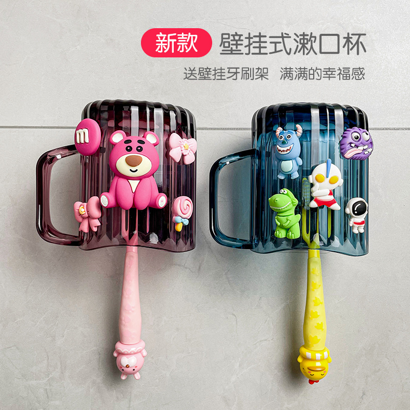 漫画子供うがいカップ壁掛け歯ブラシカップ食品級かわいい穴なし歯ブラシ棚逆さまコップ