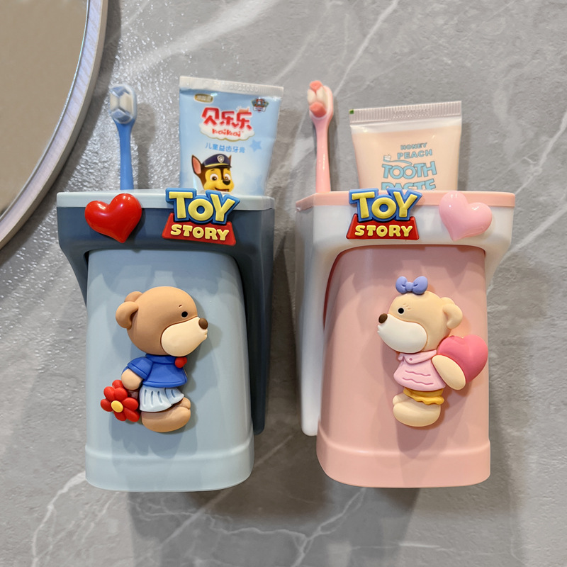 壁掛けマウスウォッシュカップ子供用歯ブラシ収納ラック電動歯ブラシホルダー大人の漫画歯ブラシカップかわいい歯ブラシ学生