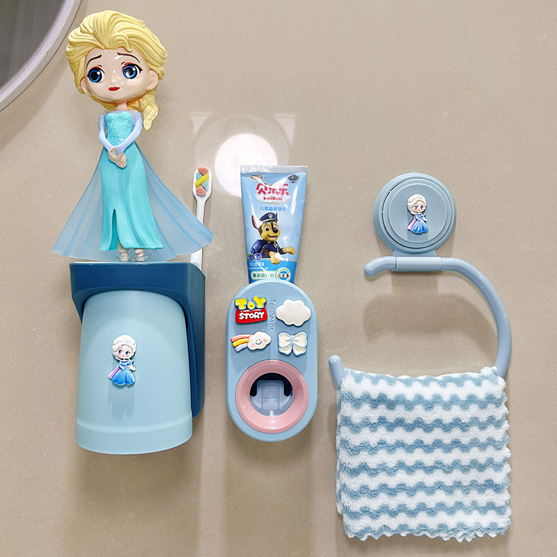 子供用洗面カップセット家庭用穴なし高颜値可爱い漫画マグネット吸壁挂けうがいカップタオルラック