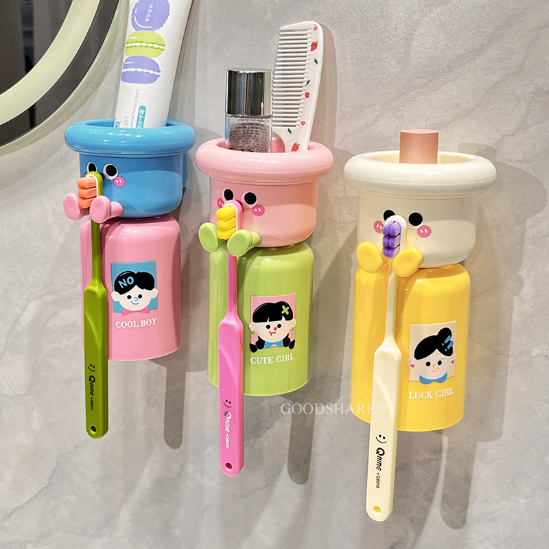 漱口杯杯架壁挂式可爱卡通高颜值家用卫生间免打孔牙膏牙刷置物架