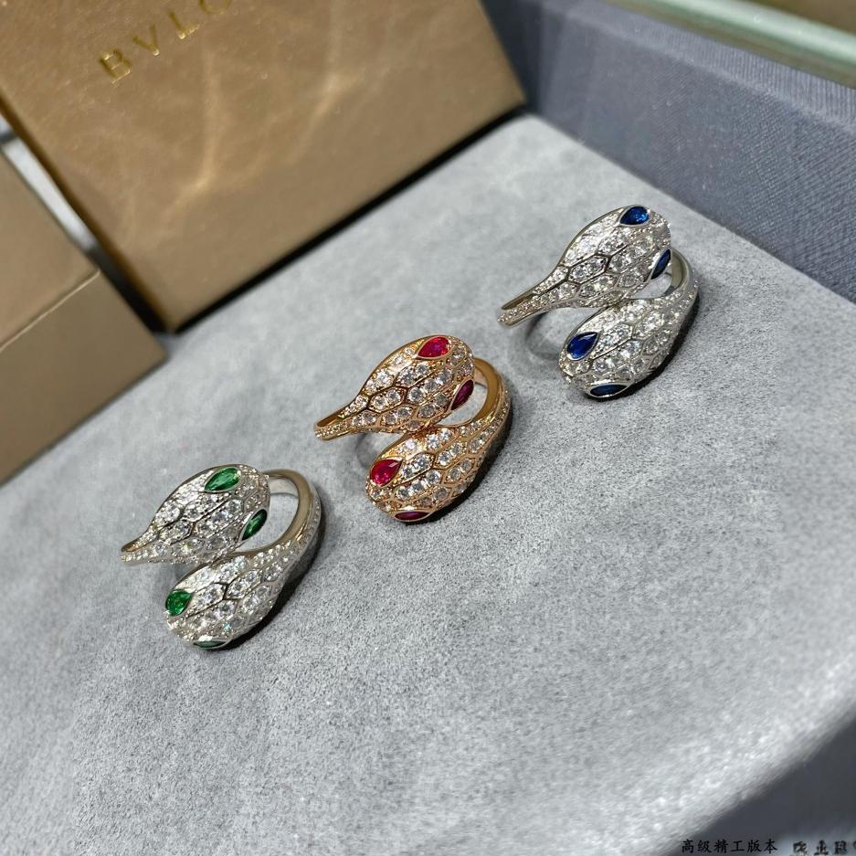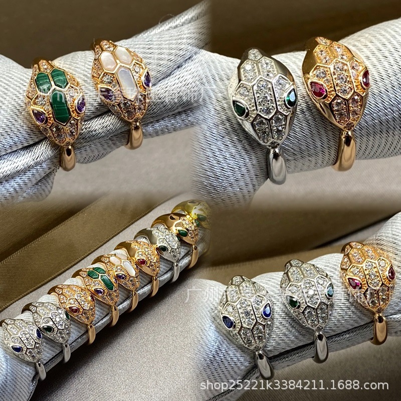 高バージョンのダイヤモンド蛇霊指輪V金メッキ18k金天然白貝母孔雀石蛇指輪ファッション