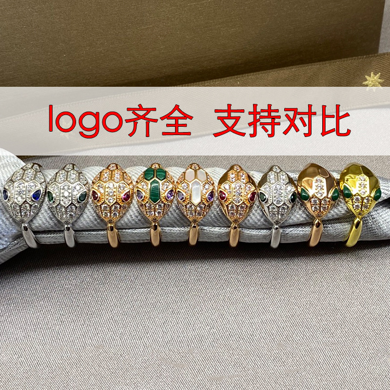 宝家高バージョンセイコー霊動蛇指輪v金天然白貝母孔雀石蛇指輪ファッション