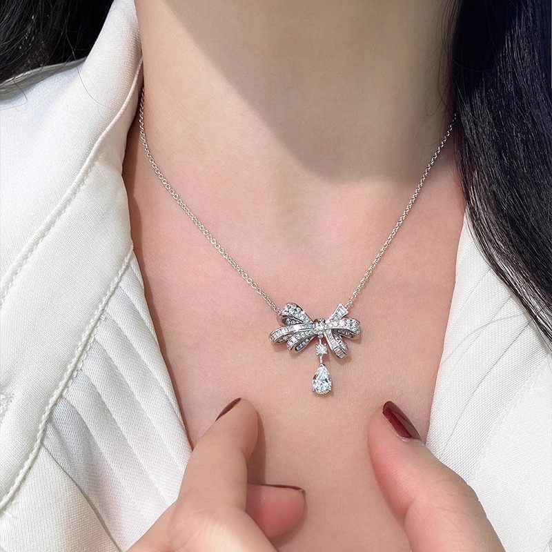 蝶結びのネックレスの女性のタイプv金満ドリルjillのお姉さんと同じタイプの水滴ドリルのペンダントの人工ダイヤモンドの鎖
