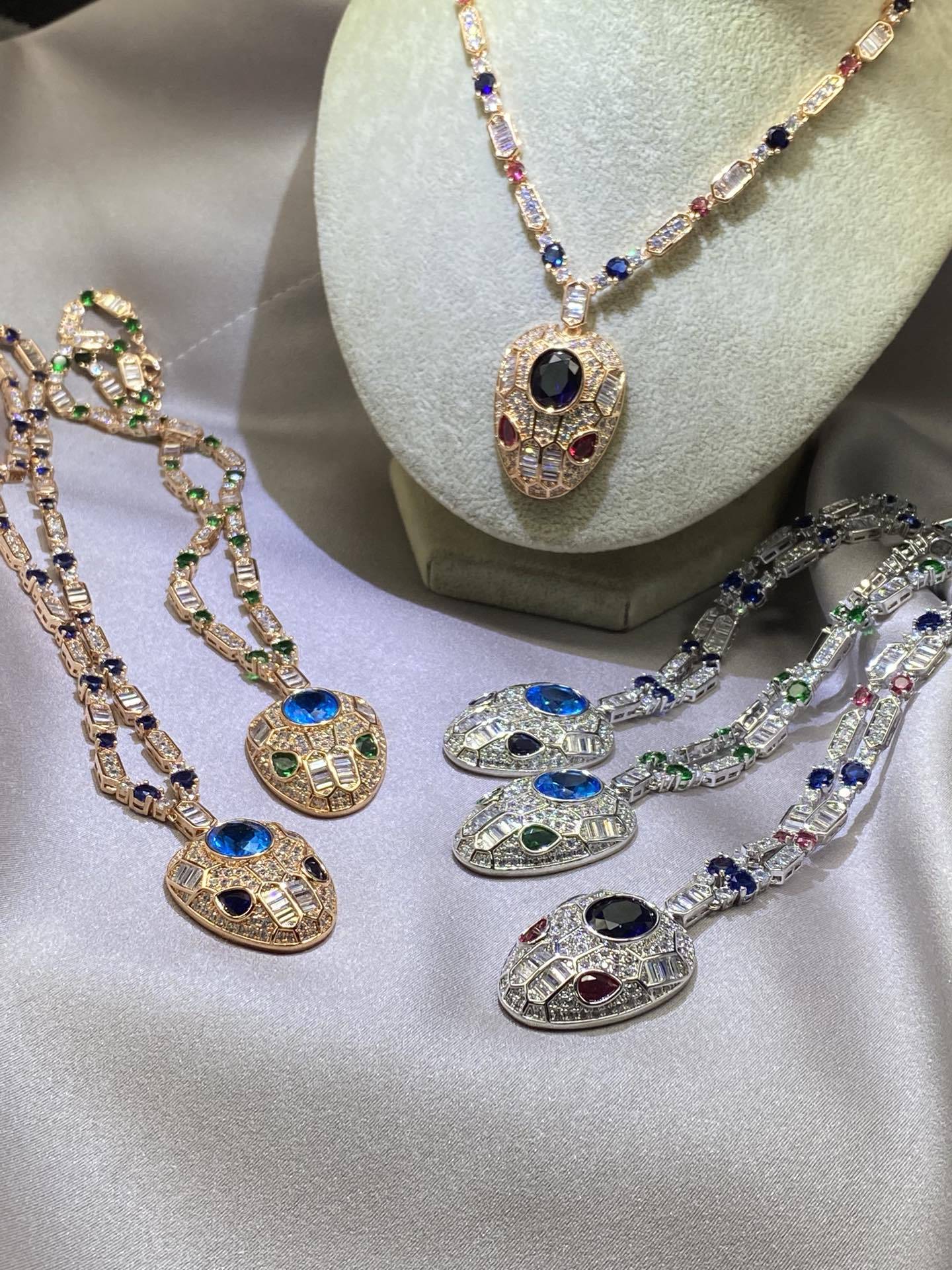 欧米のファッションはダイヤモンドの蛇の形のネックレスv金メッキ18kの金霊蛇の満天の星の赤いコランダムの緑のドリルの目の鎖をはめ込んでいます。