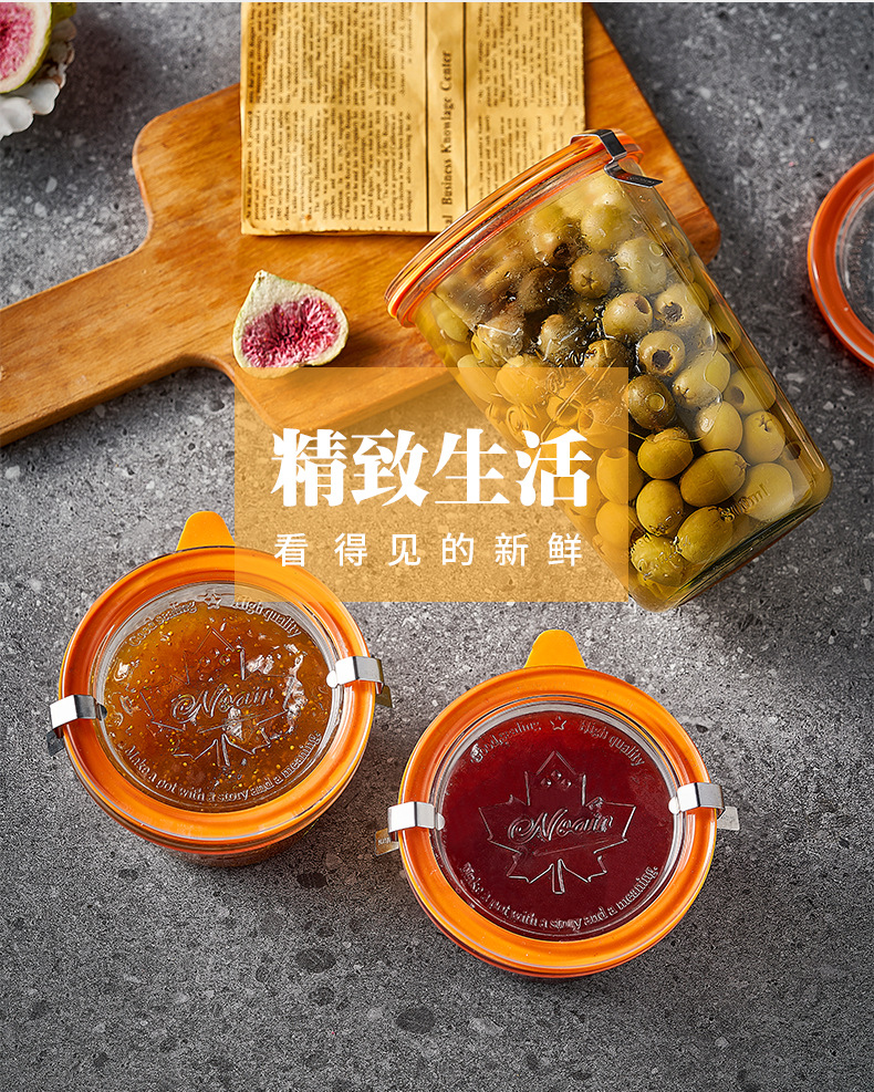 商品名称:双重强密封透明玻璃密封罐零食干货茶叶可叠加储物罐桌面收纳罐批--大号 800毫升/小号350ml