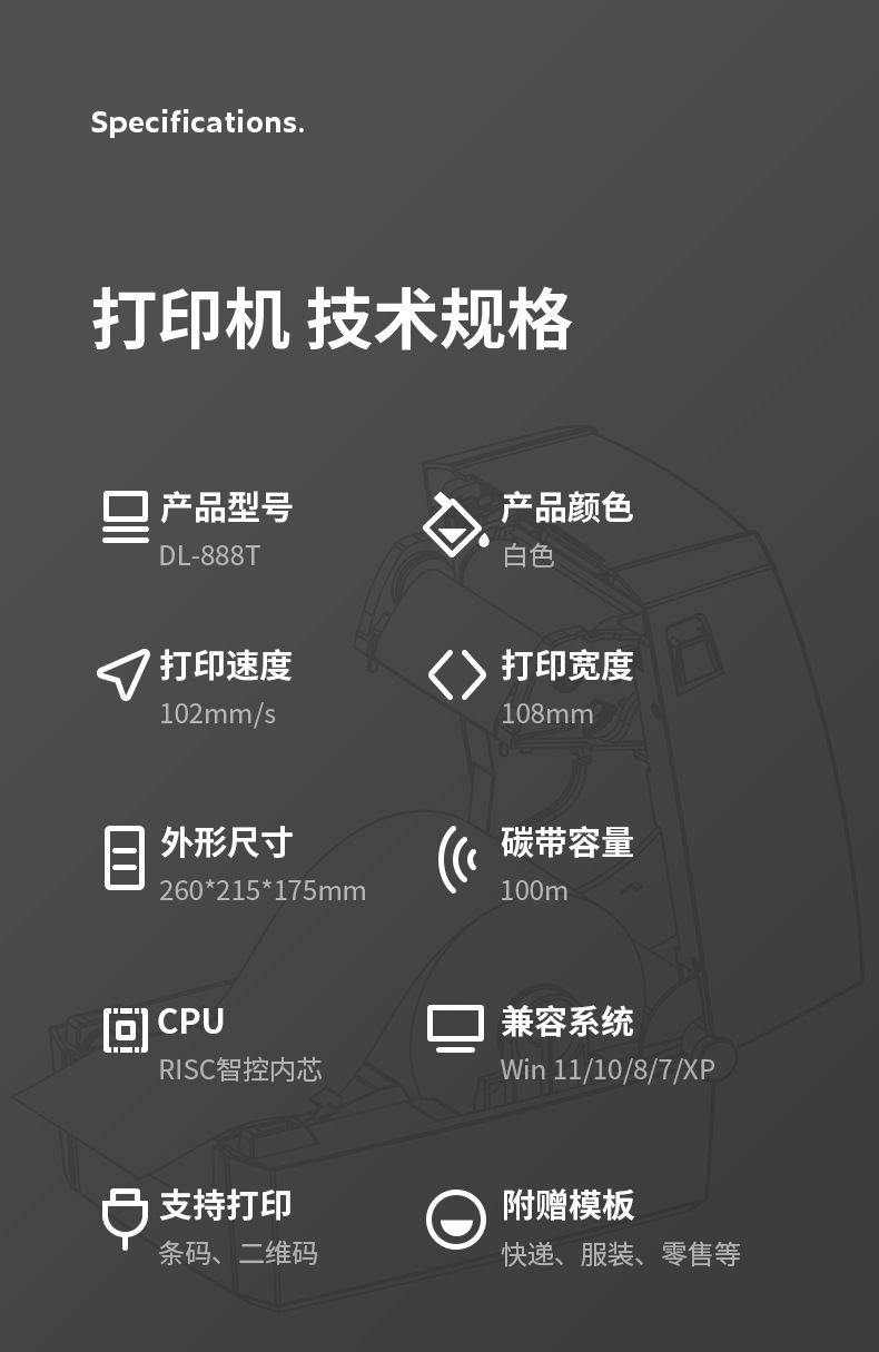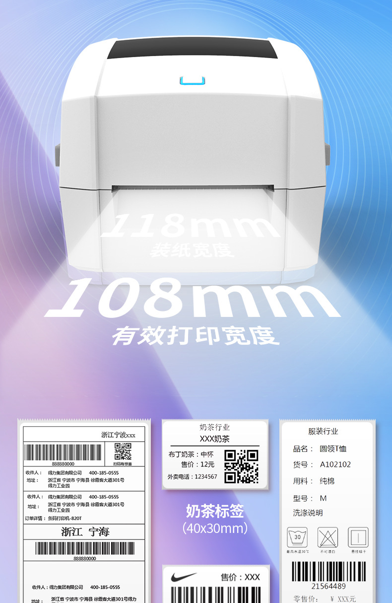デリ 888T 熱転写リボン バーコード ラベル プリンター ハングタグ 洗濯マーク サーマル プリンターは携帯電話に接続可能