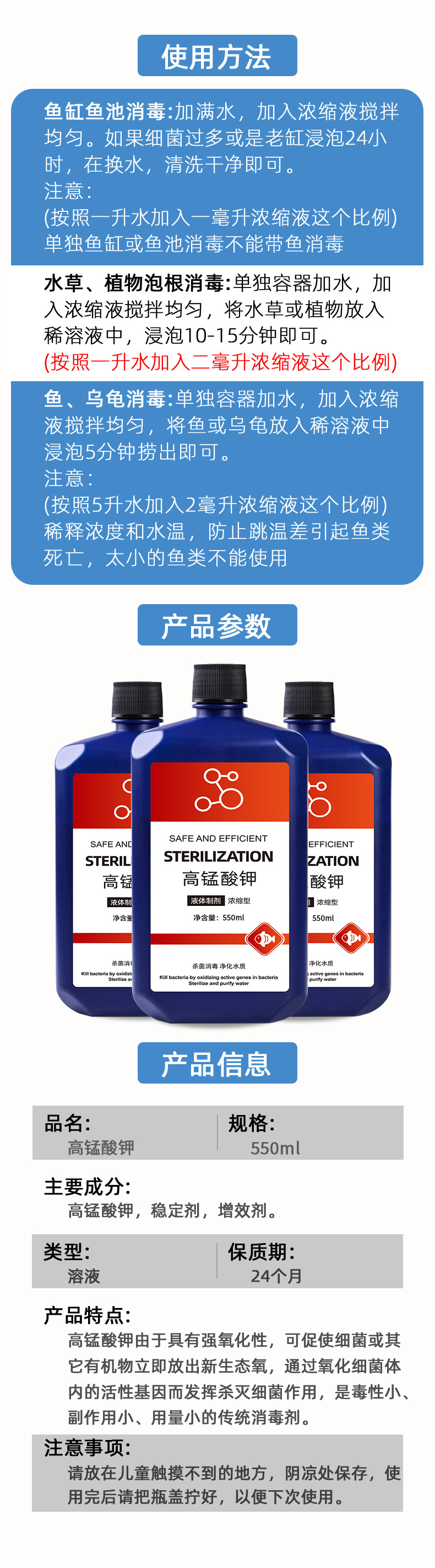 過マンガン酸カリウム魚用過猛酸カリウム溶液粉剤水族用品水槽植物殺菌消毒液浄水剤
