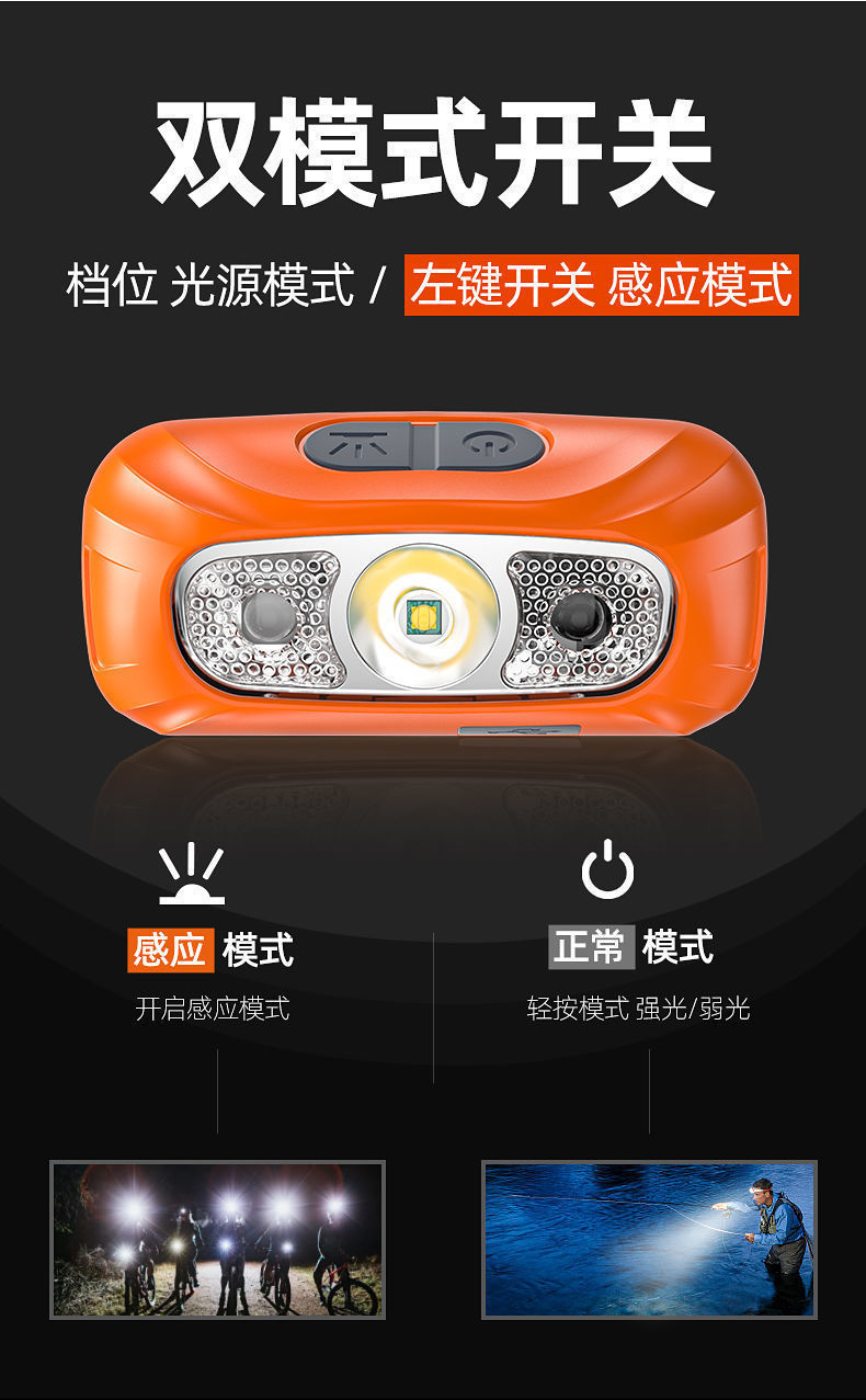 强い光のヘッドライトの充电の超明るいヘッドセット式の照明のランプの超长の航続の感応路亜夜の钓りの家庭用の懐中电灯