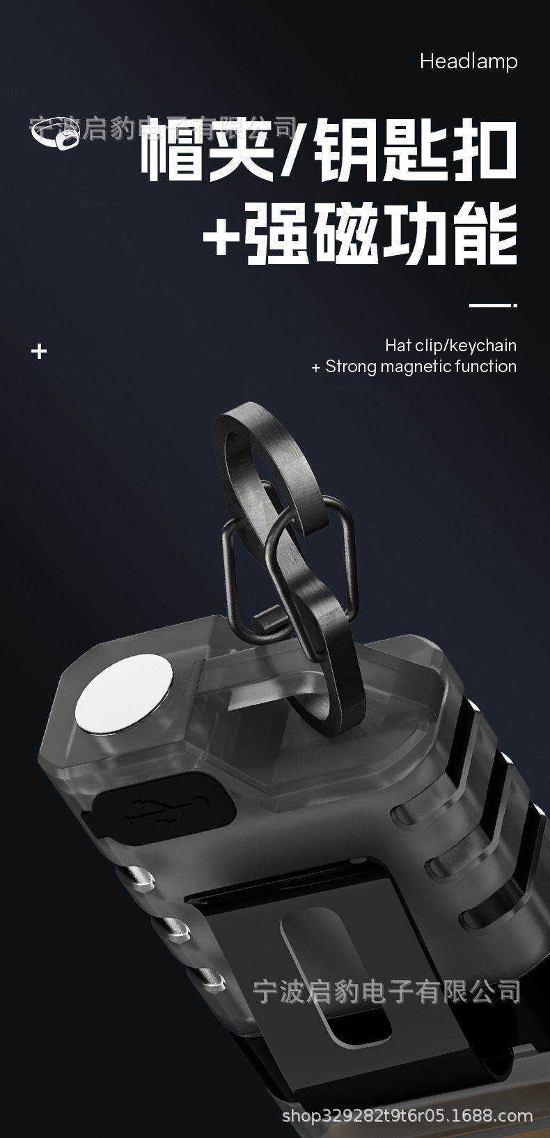 クロスボーダー携帯キーホルダーライトアウトドア電気高亮帽子クリップ磁気吸引強い光ミニ懐中電灯緊急作業灯