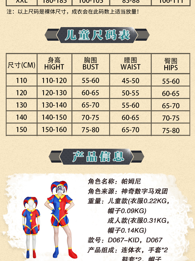 神奇数字马戏团帕姆尼Cosplay小丑紧身衣连体衣套装角色扮演服饰