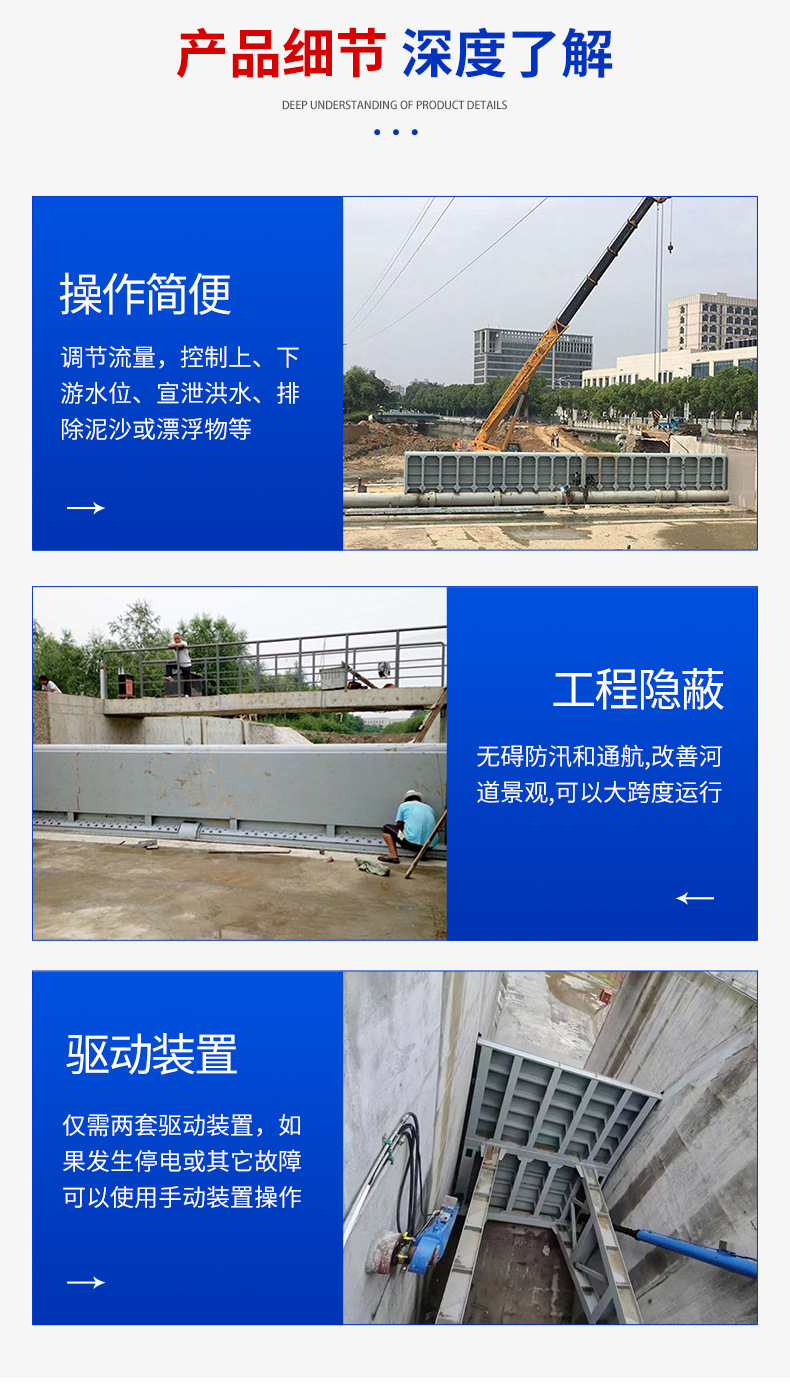 メーカーは油圧鋼製ダムゲート、水力発電ヒンジダム、工場景観ダム、平板鋼製フラップゲートをカスタマイズして供給します。