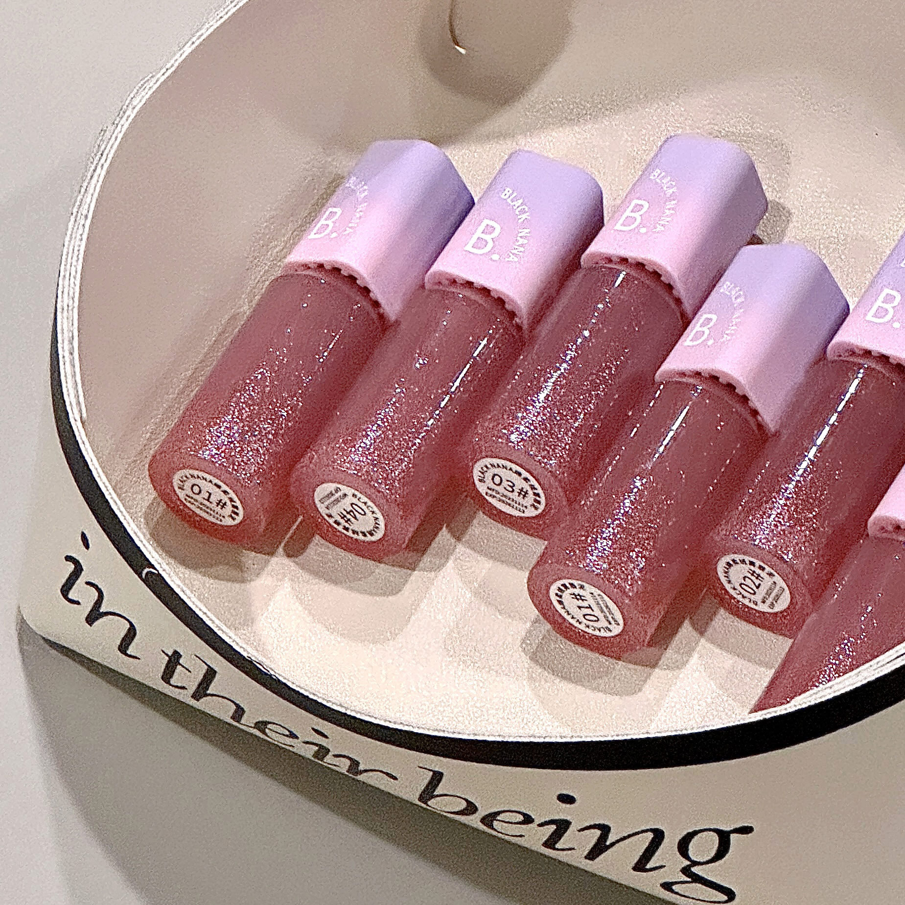 透き通った鏡面唇釉薬 ~ 透き通った水の光感が潤い、色落ちしない学生党の素顔が白いブランドの口紅を見せています。