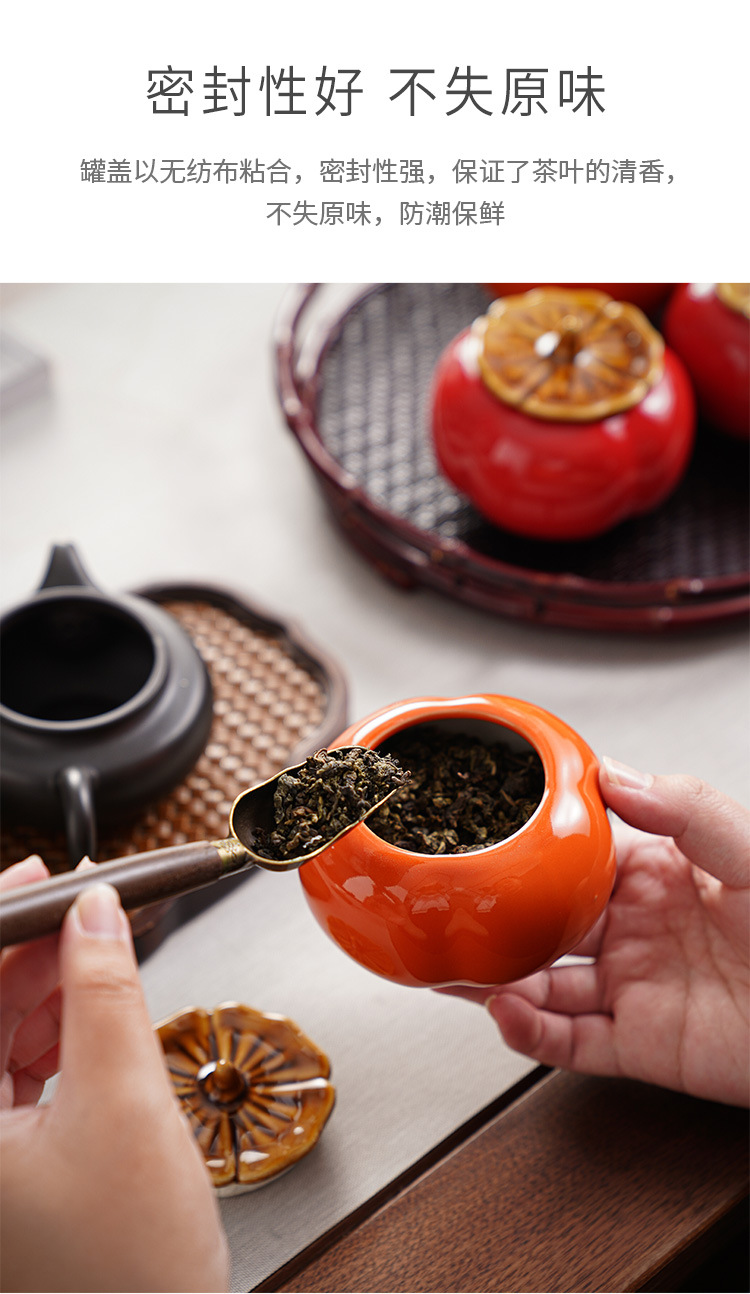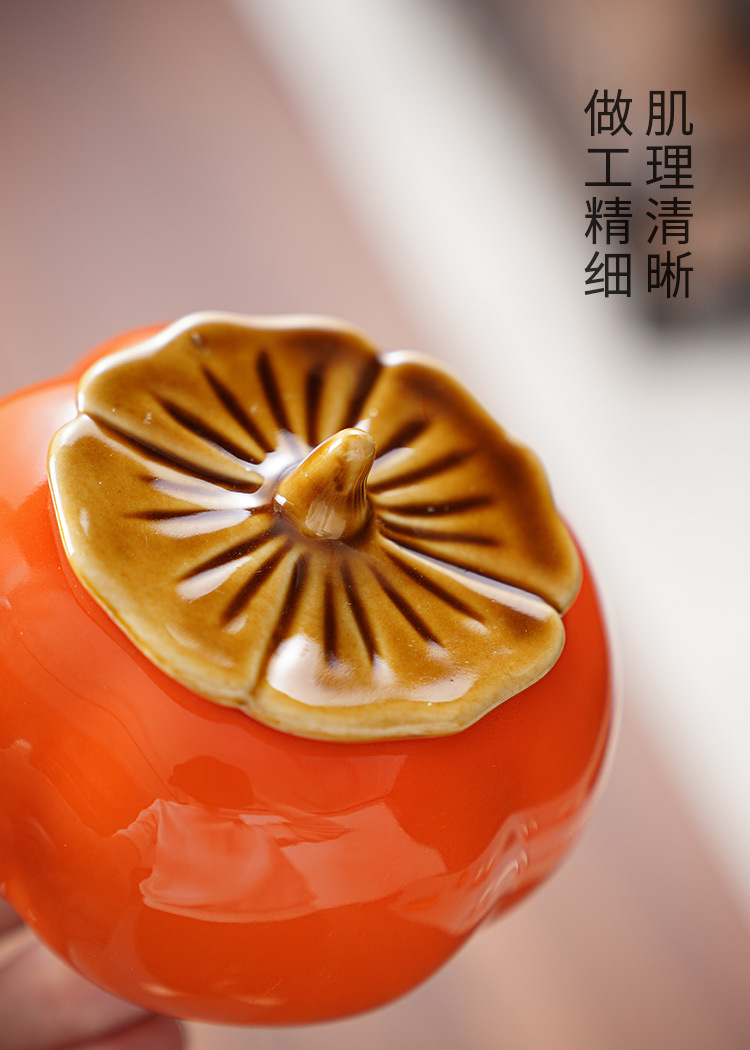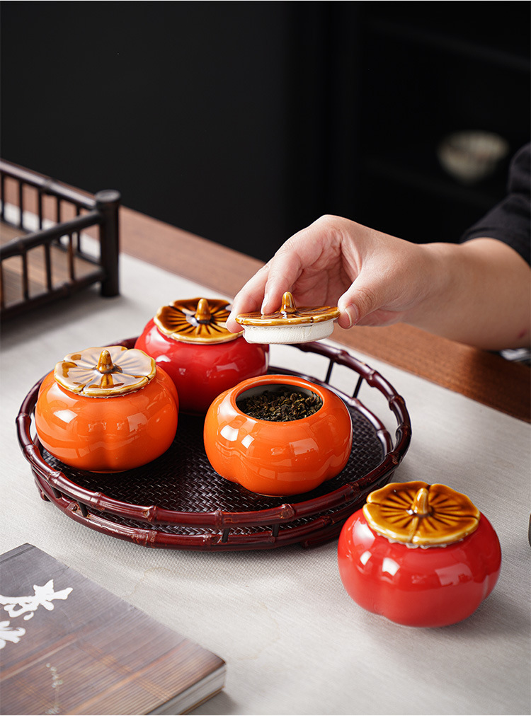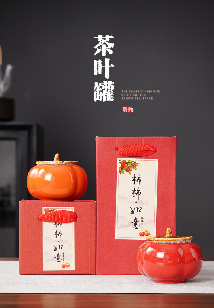 柿茶葉缶陶磁器密封缶万事如意喜糖缶礼箱創意小キャンディー缶お土産