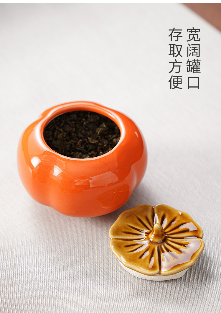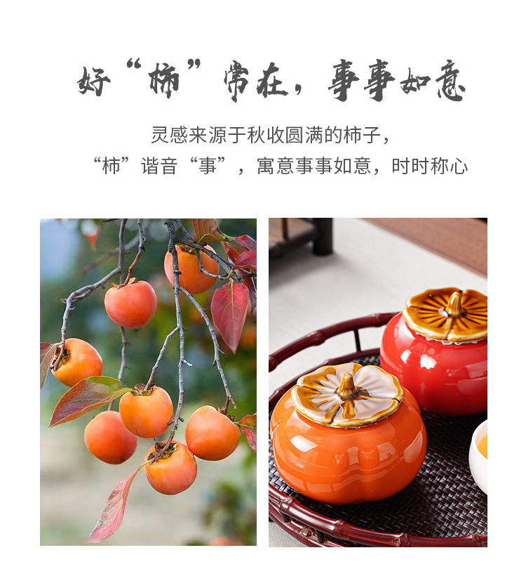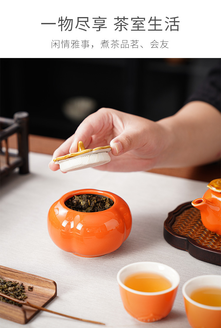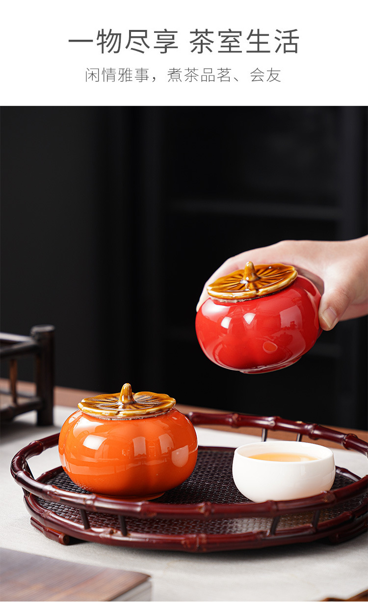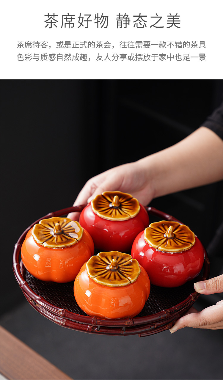 柿茶葉缶陶磁器密封缶万事如意喜糖缶礼箱創意小キャンディー缶お土産