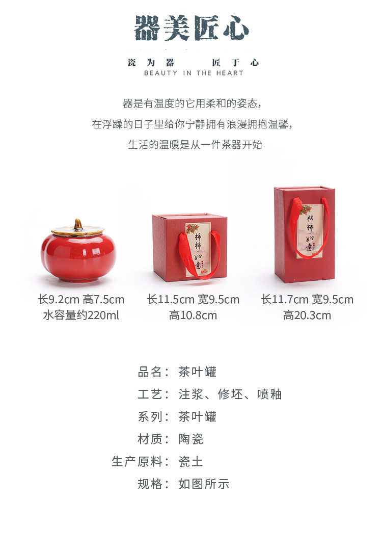 茶葉缶陶磁器万事密封缶喜糖茶葉箱如意お土産結婚祝いキャンディー缶柿プレゼント