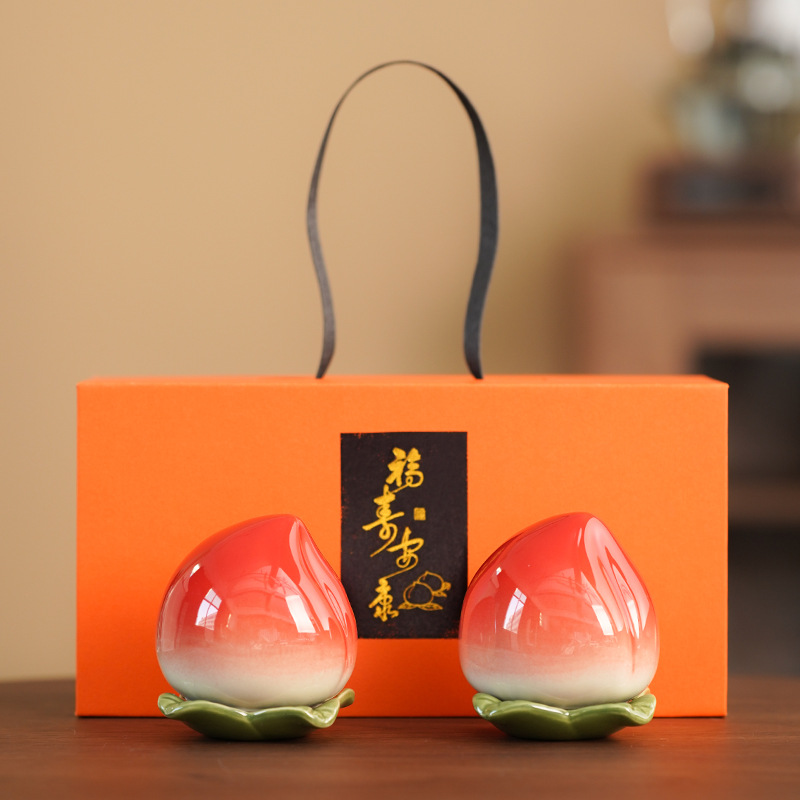 桃茶葉缶陶磁器寿桃携帯ミニシミュレーションイチゴ密封貯蔵タンク誕生日誕生日パーティーお土産