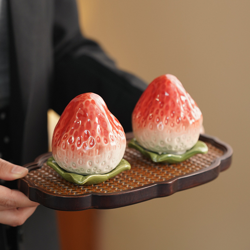 创意陶瓷水果仿真草莓茶叶罐家用桃子桌面摆件密封存储糖果罐礼盒