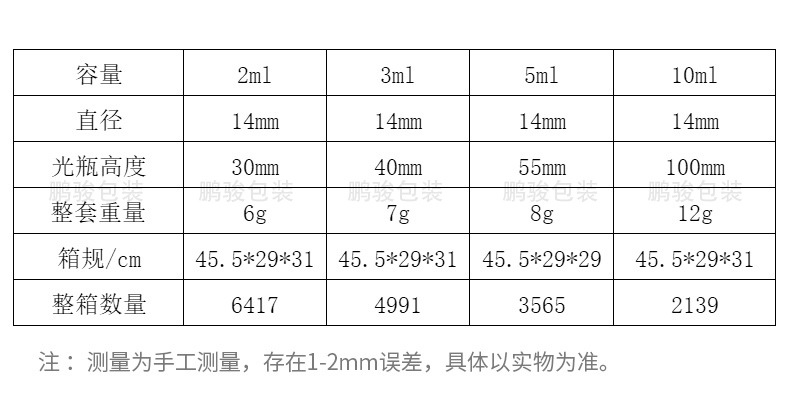 仕様 2ml(14*30),10ml(14*100),5ml(14*55),3ml(14*40)
