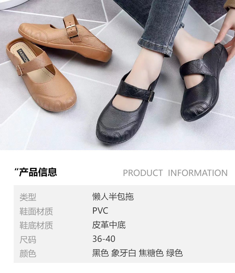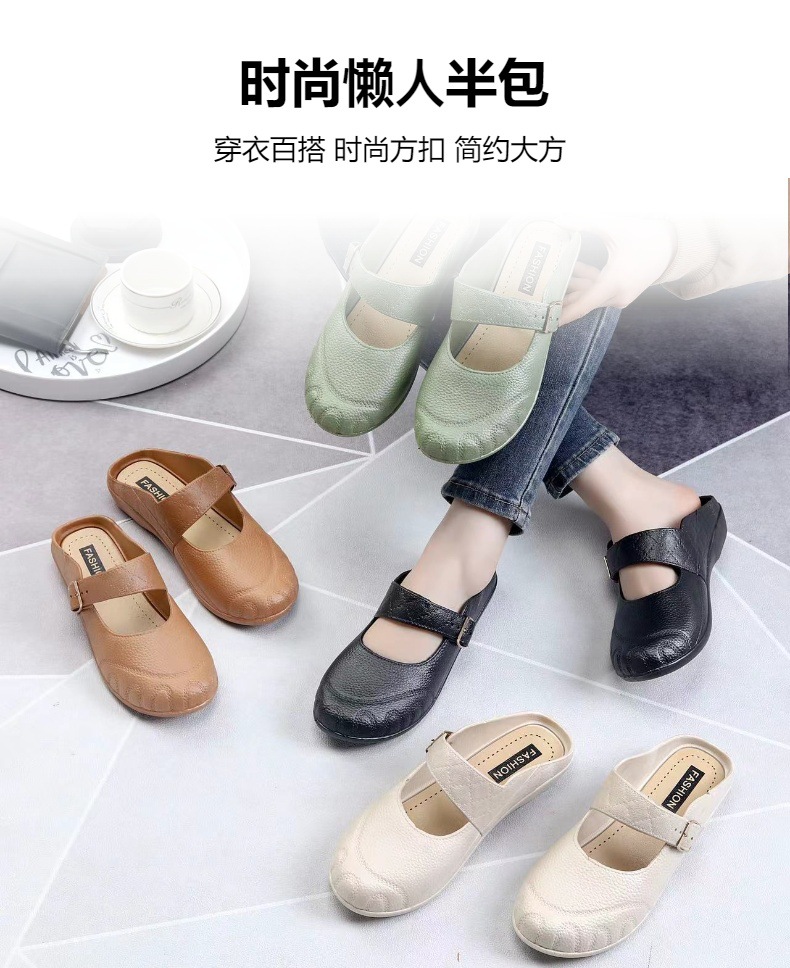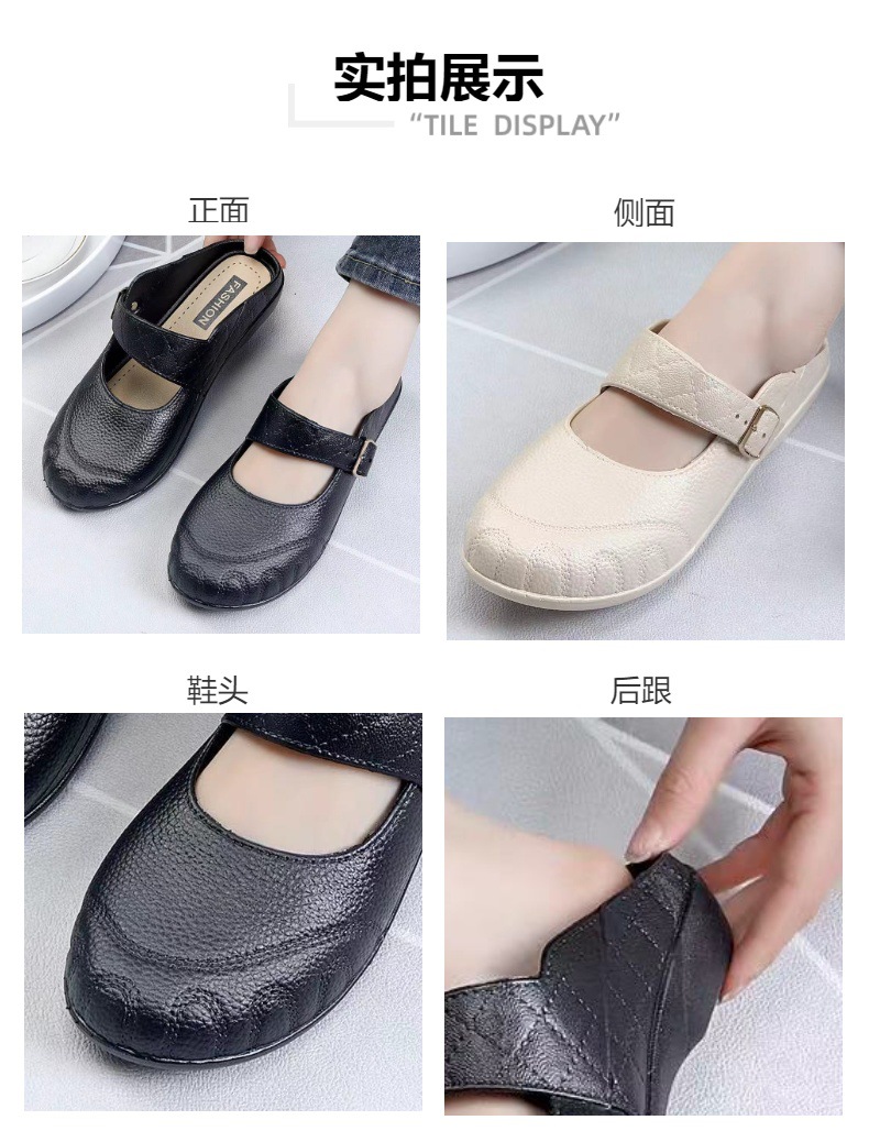 2024ファッションの新しい半スリッパの女性のお母さんの透かし彫りのサンダルの中で高齢者の怠け者の柔らかい底の滑り止めの防水