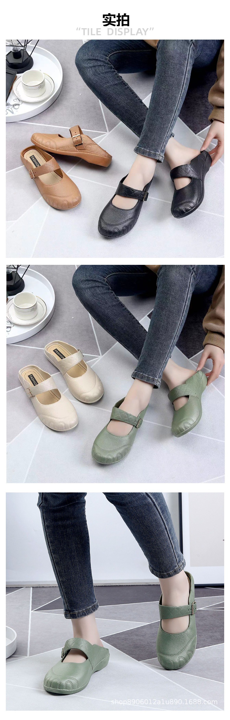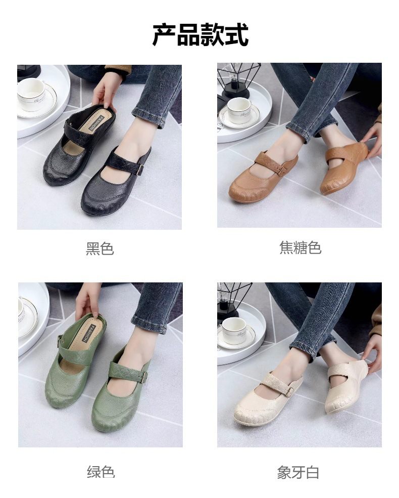 新しい秋の半引きの女子学生のファッション的なカジュアルな平底の外は1足の女性の包頭の涼しいボタンの女性の靴を着ます。