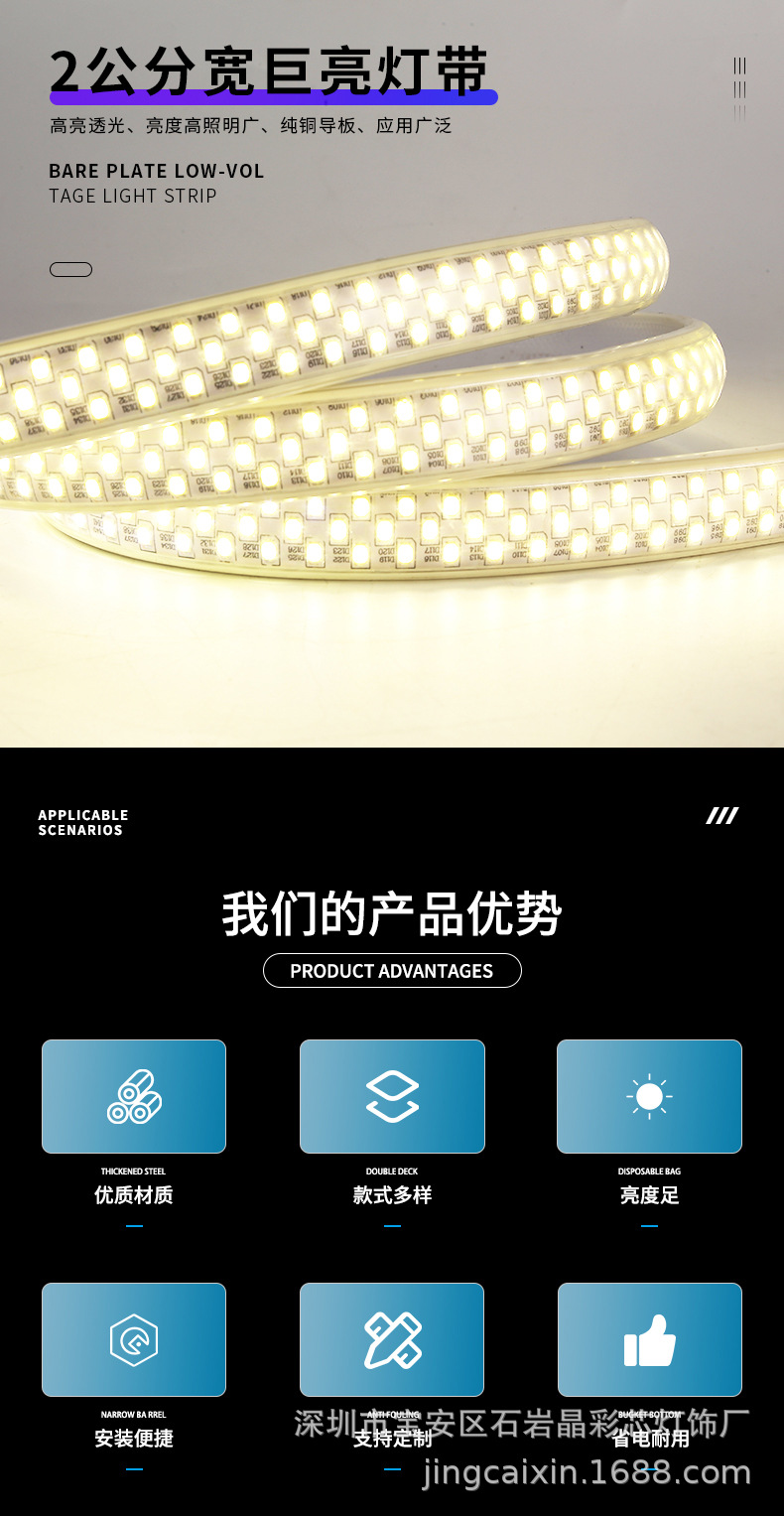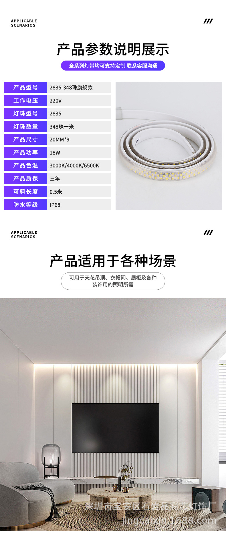 led灯带高压220v超亮户外防水室内家装工程商业亮化照明氛围灯条