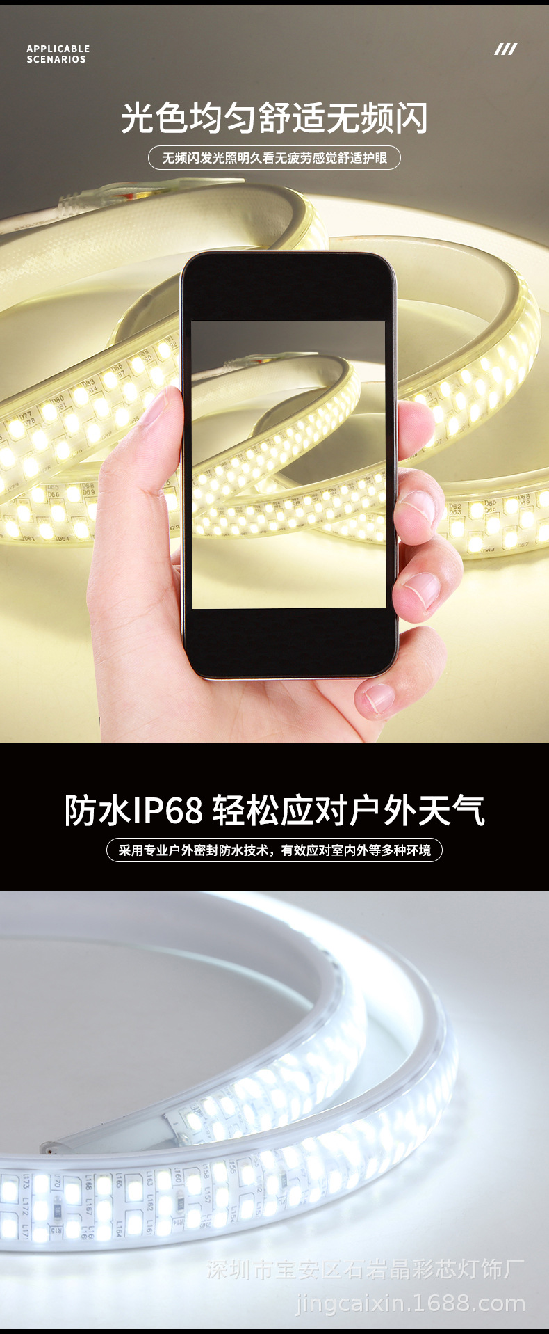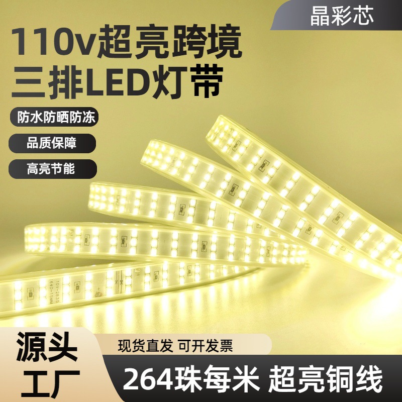 led灯带高压110v220v超亮三排180珠户外防水家装工程商业照明灯条