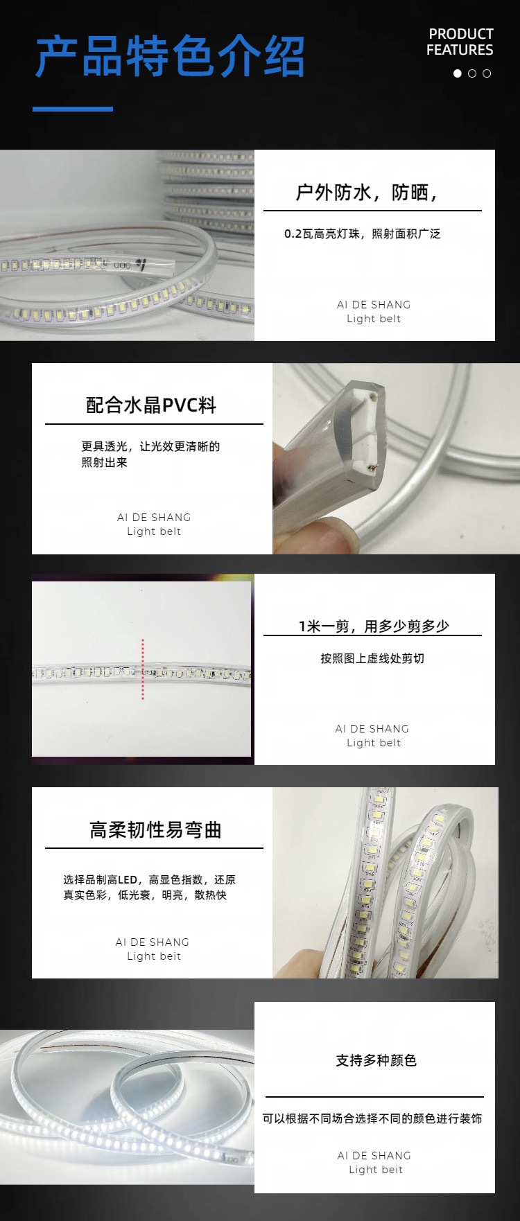 220v高電圧超高輝度LEDライトストリップ、屋外防水、住宅装飾、工事現場照明、広告雰囲気、ソフトライトストリップ、高輝度
