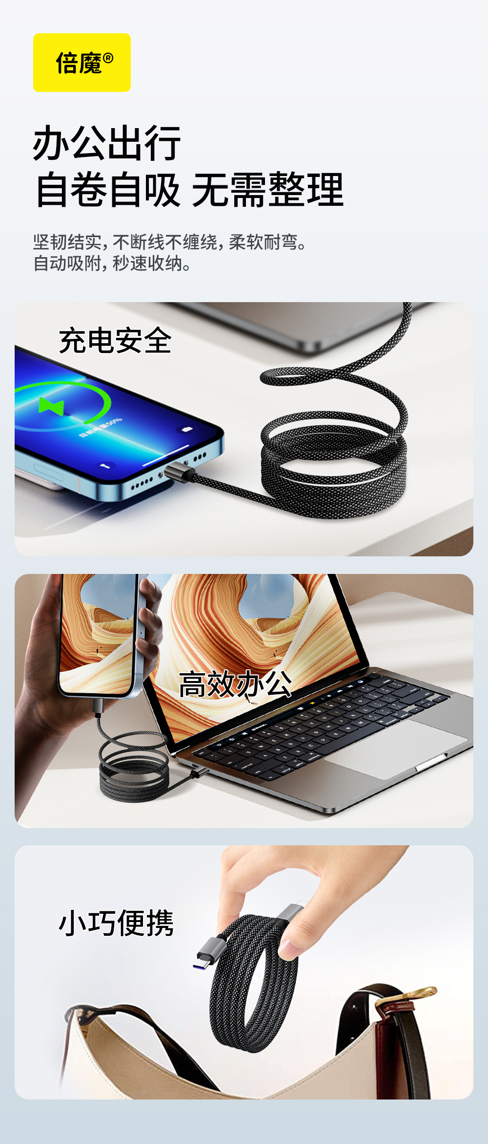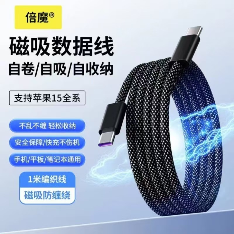 倍魔磁吸收纳数据线 手机平板快充线适用苹果11-15编织线双type-C