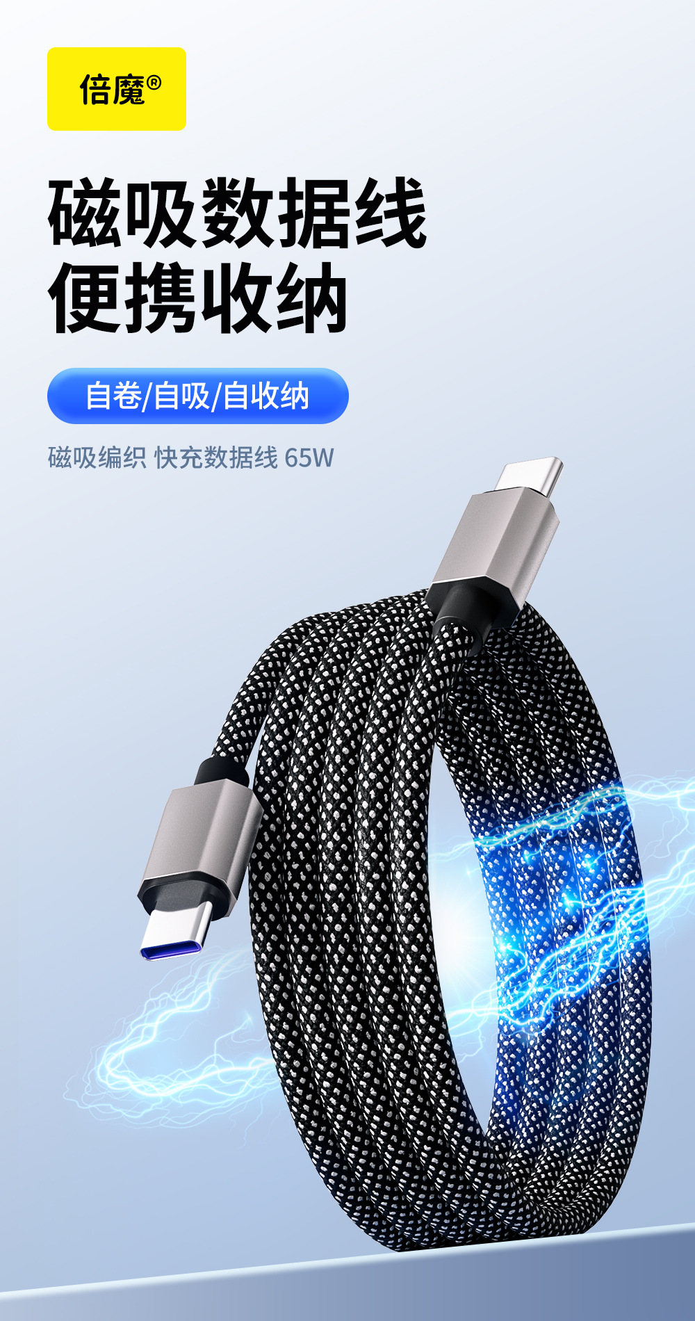 倍魔磁吸收纳编织尼龙数据线小巧便携手机平板快充线适用苹果华为