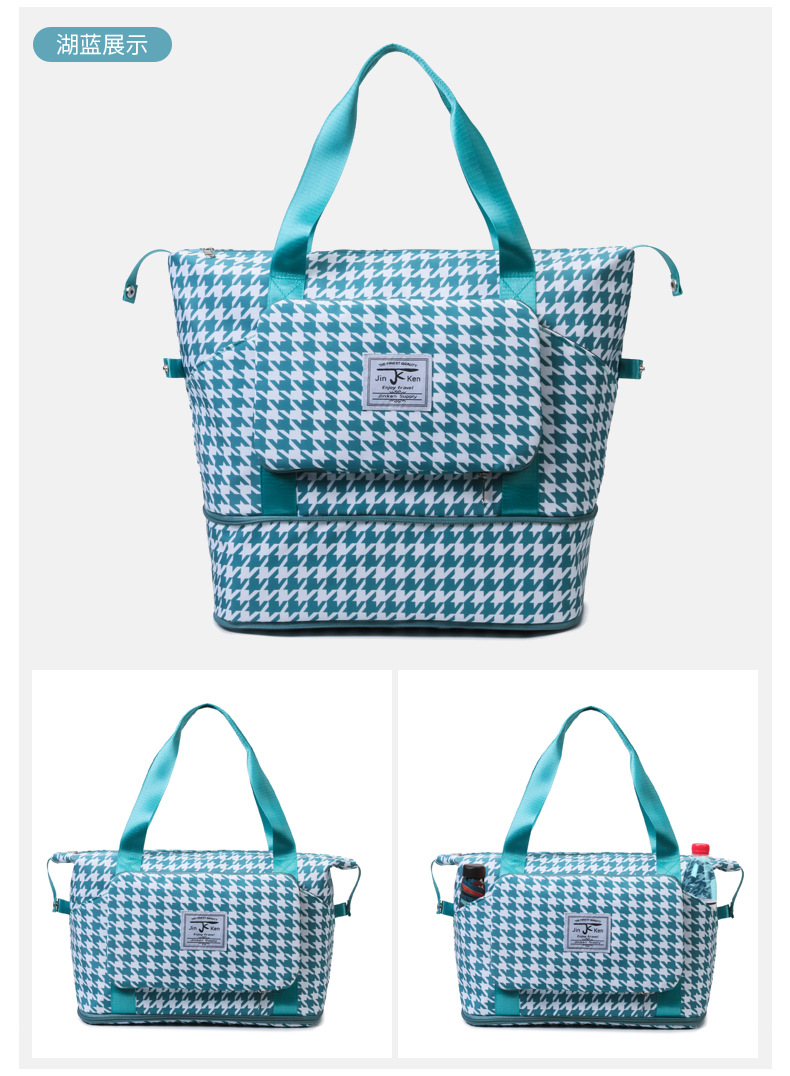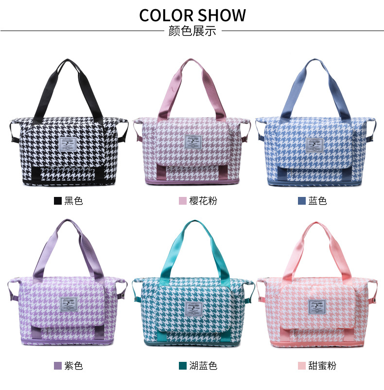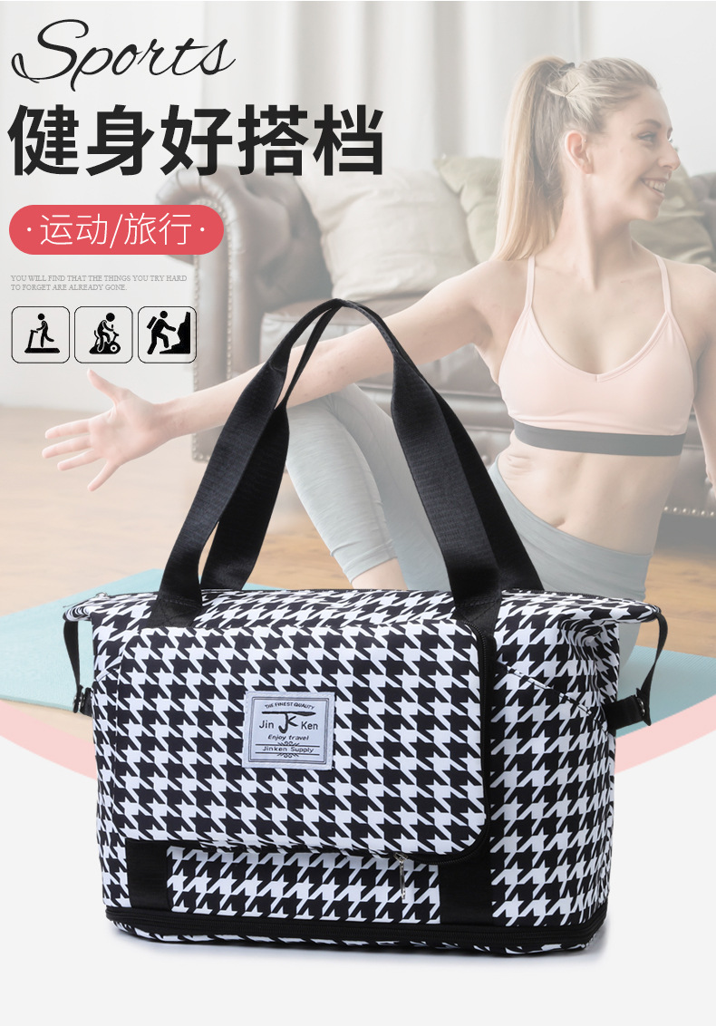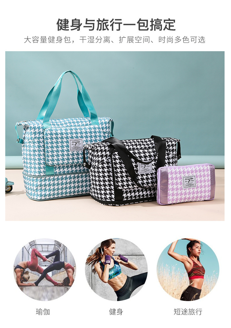 乾湿分離折り畳み式ヨガバッグ小清新格子衝突色大容量荷物カバン