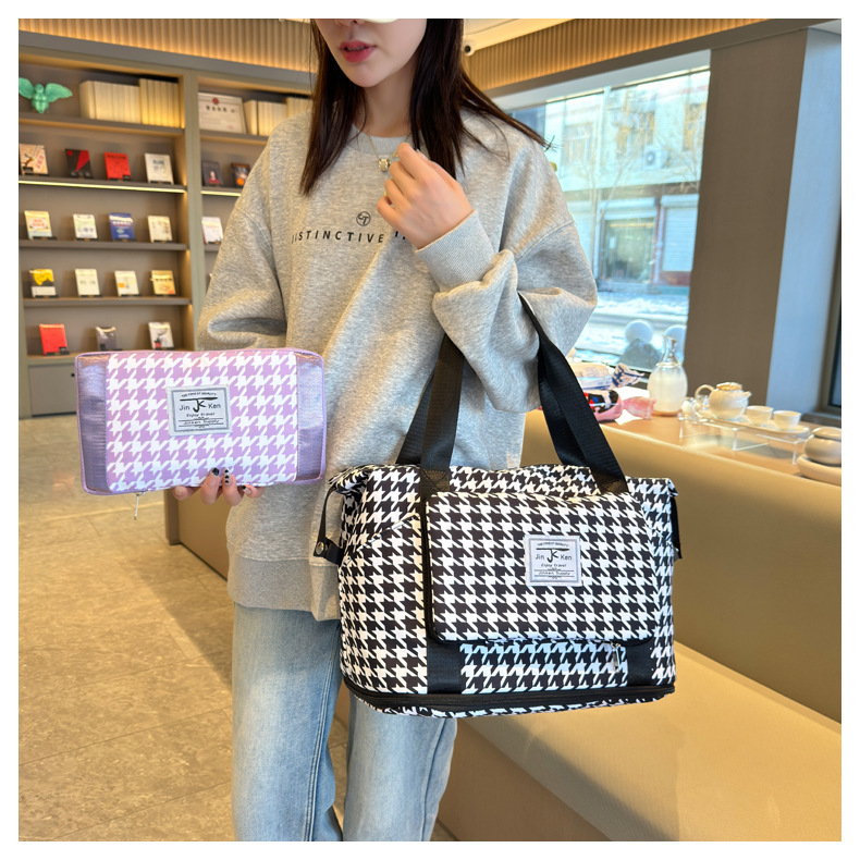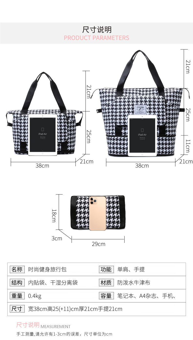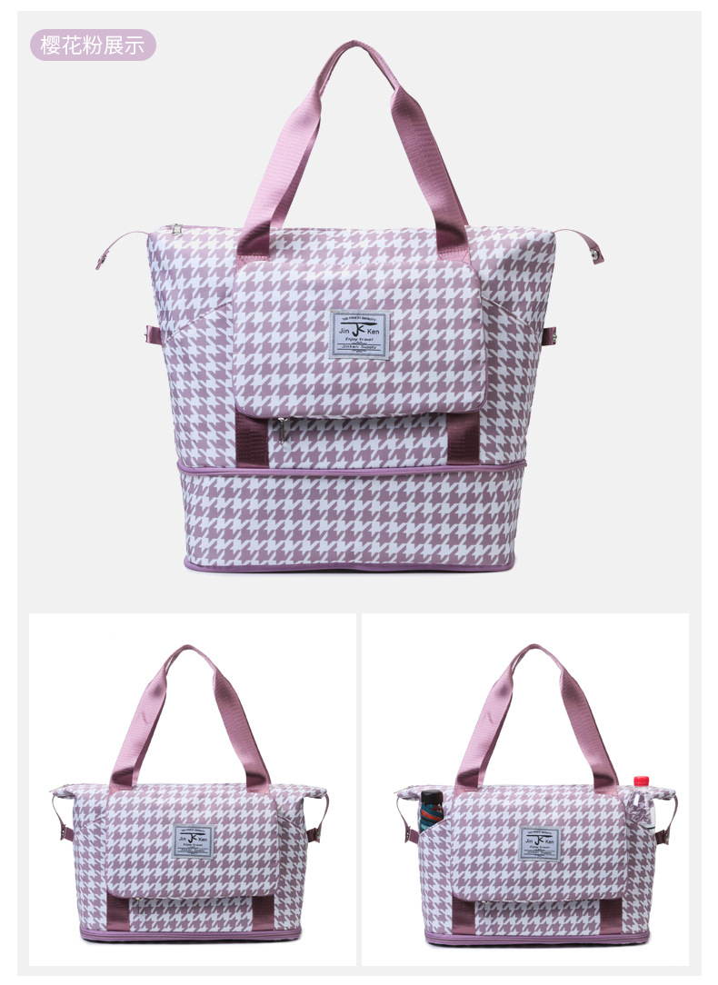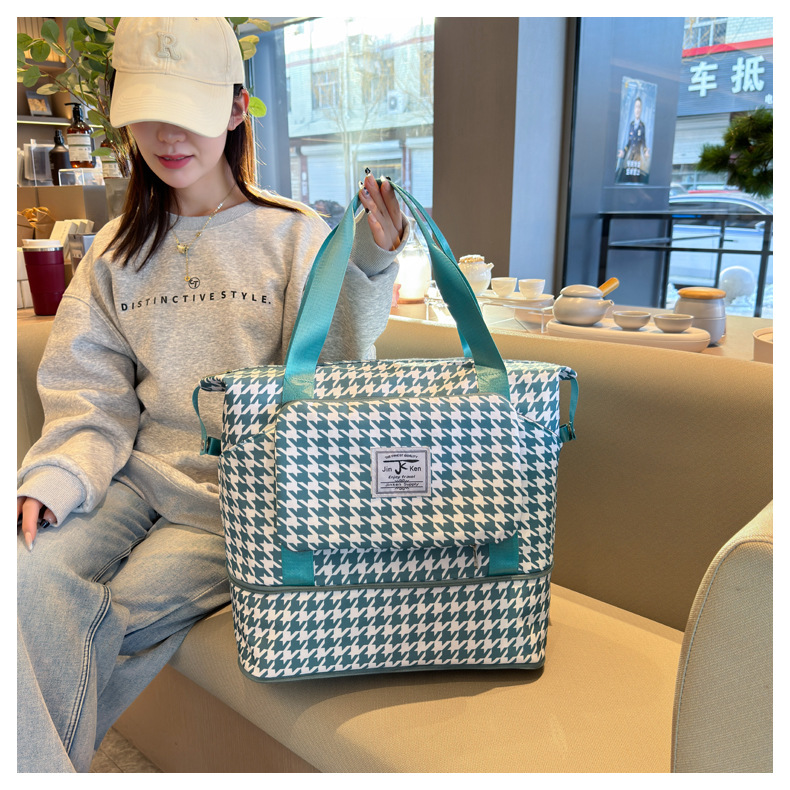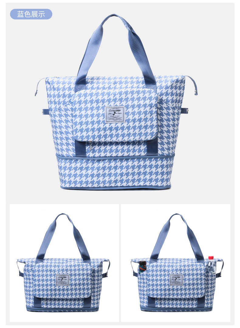 乾湿分離折り畳み式ヨガバッグ小清新格子衝突色大容量荷物カバン