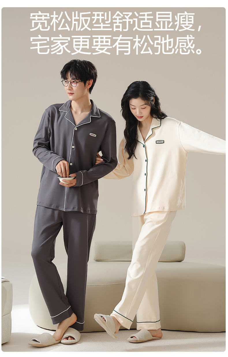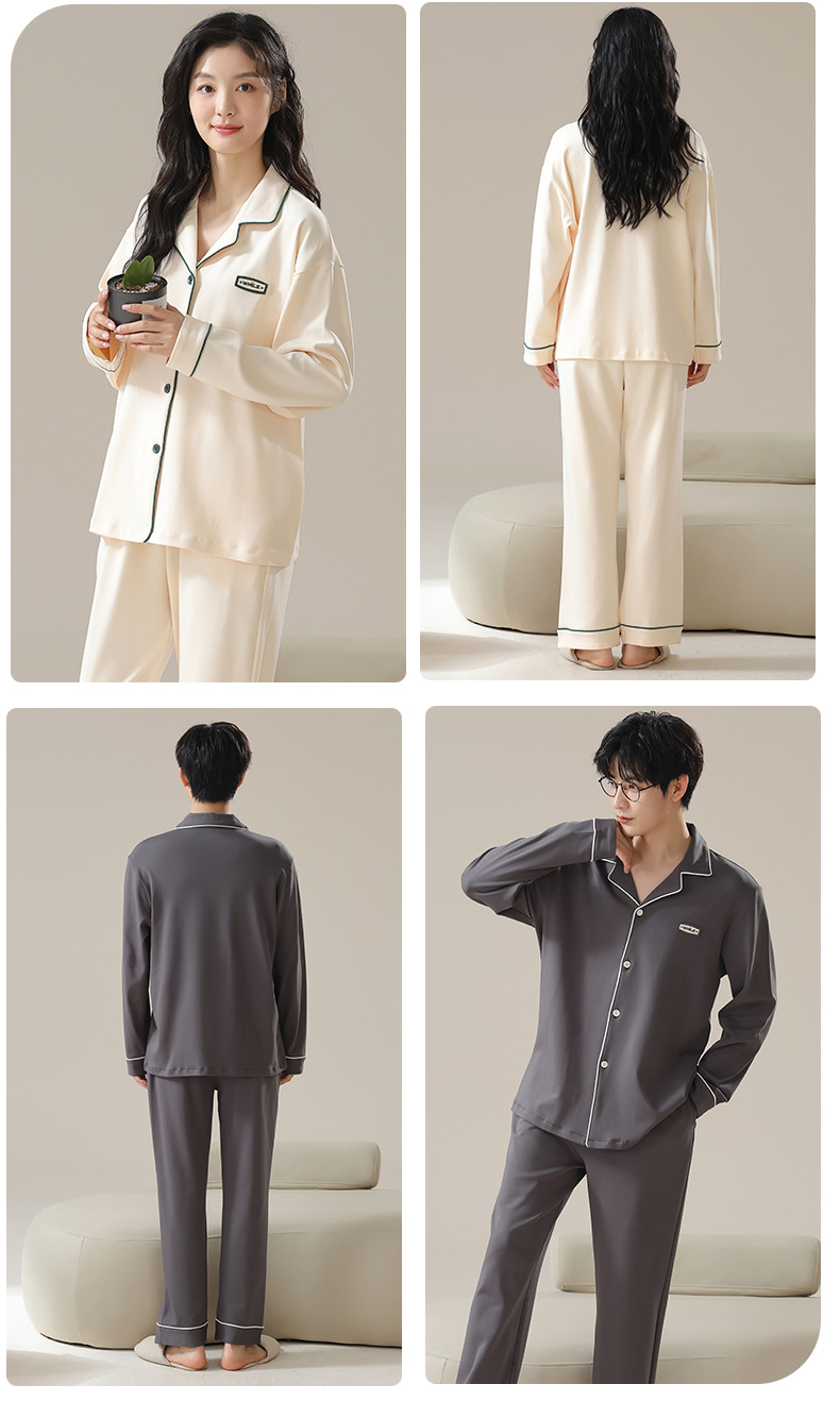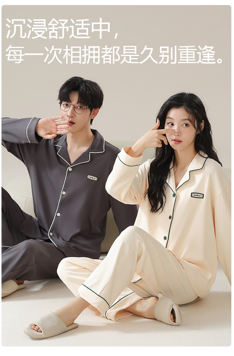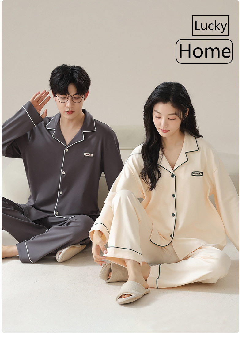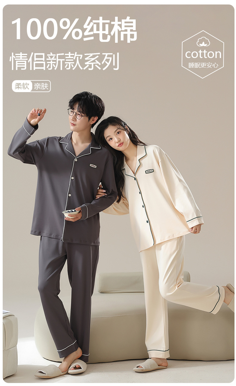 純綿のカップルパジャマ、女性用長袖春秋カップルウェア、屋外で着用可能、シンプルな秋冬メンズホームウェアセット