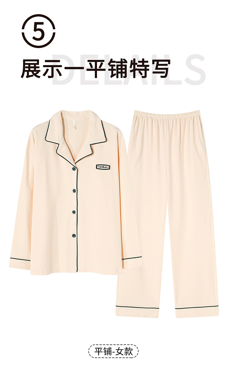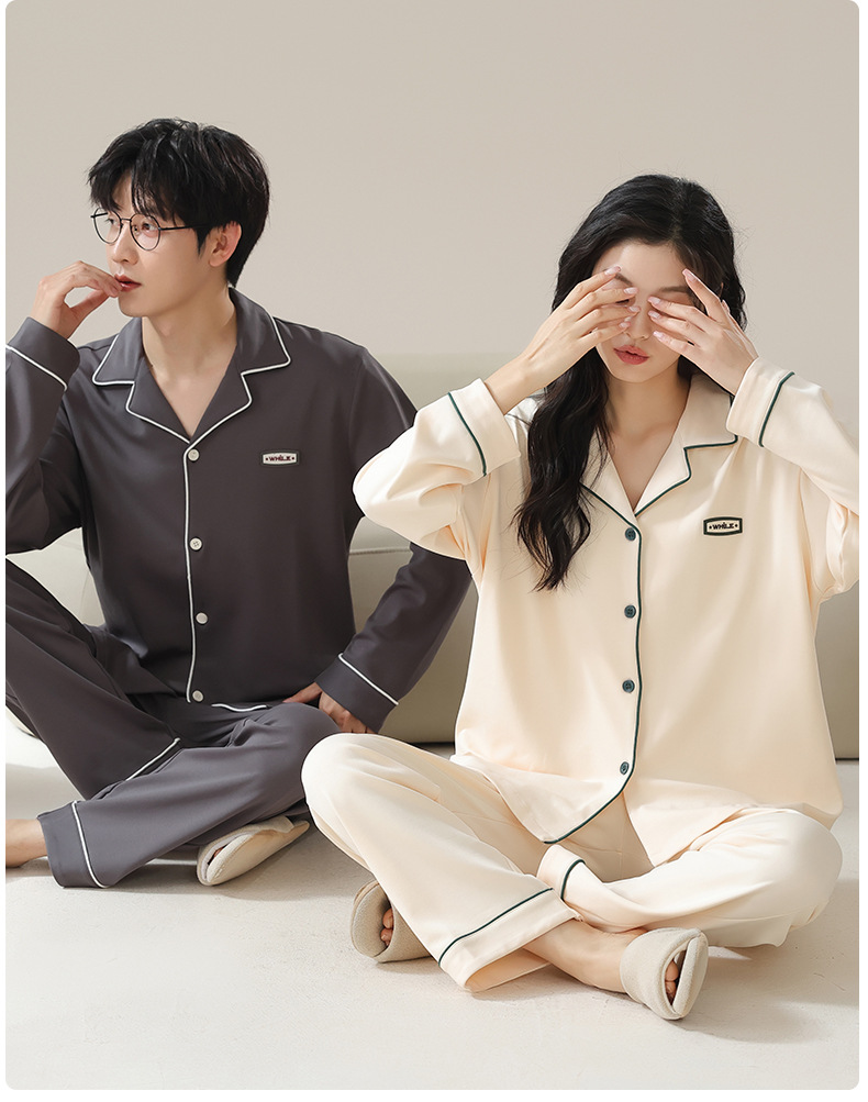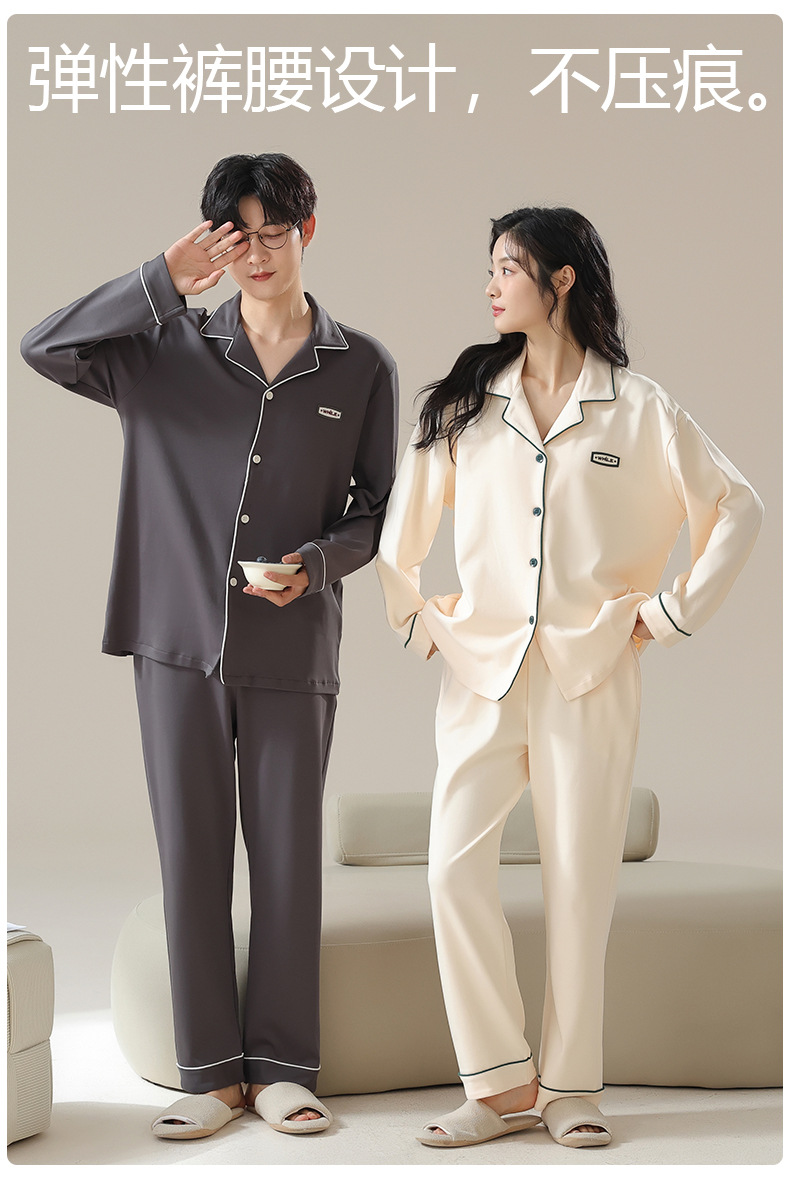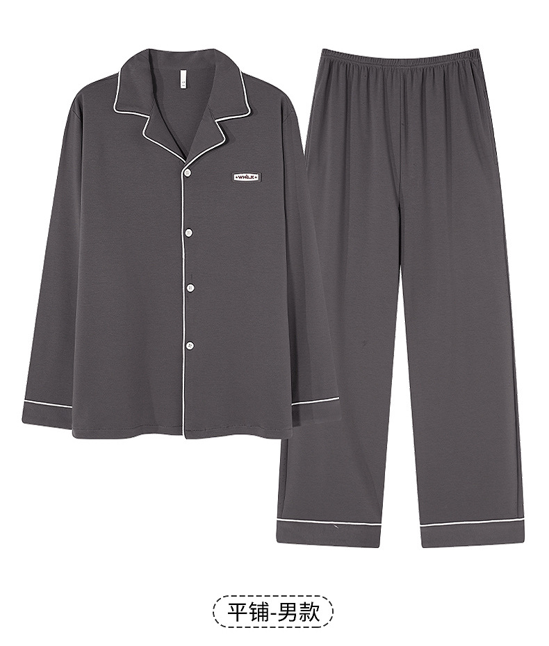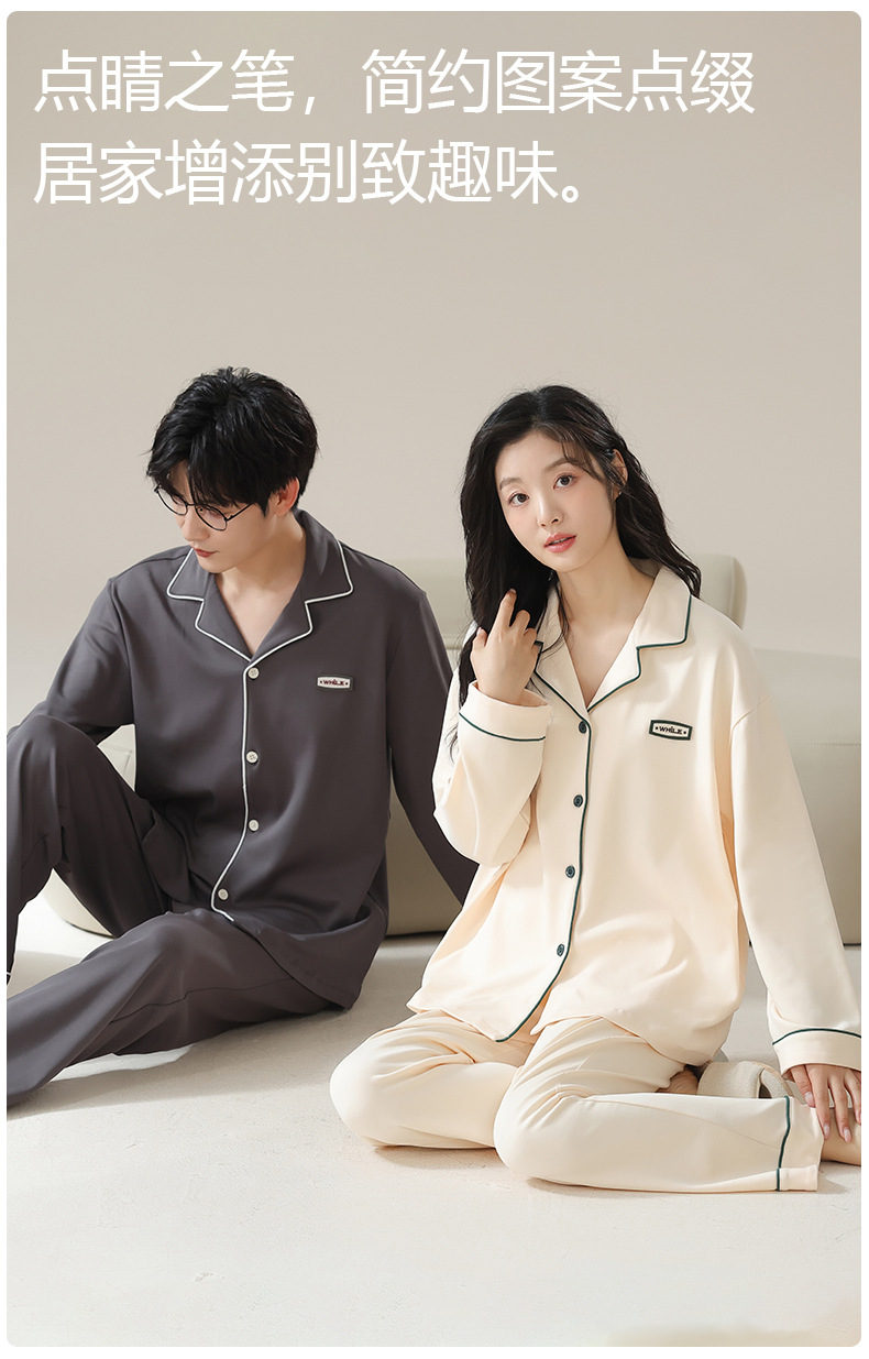純綿のカップルパジャマ、女性用長袖春秋カップルウェア、屋外で着用可能、シンプルな秋冬メンズホームウェアセット