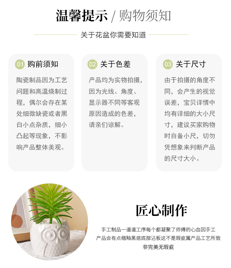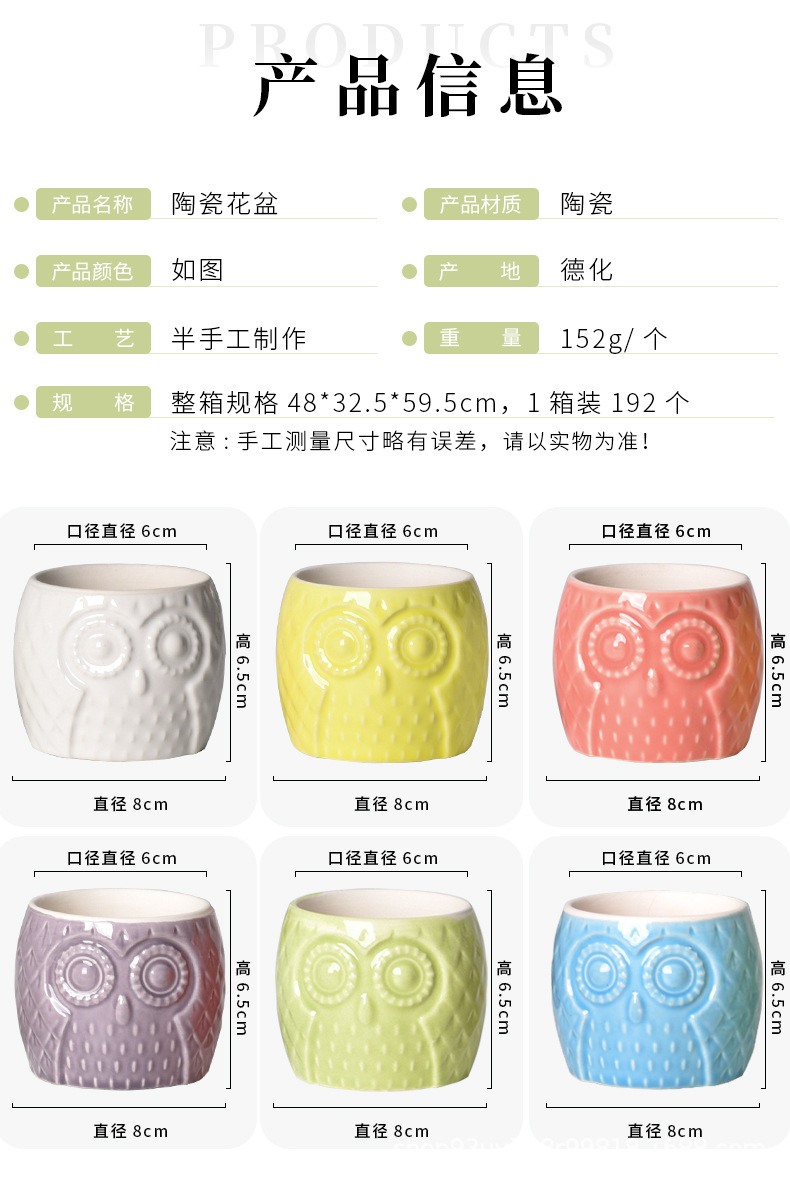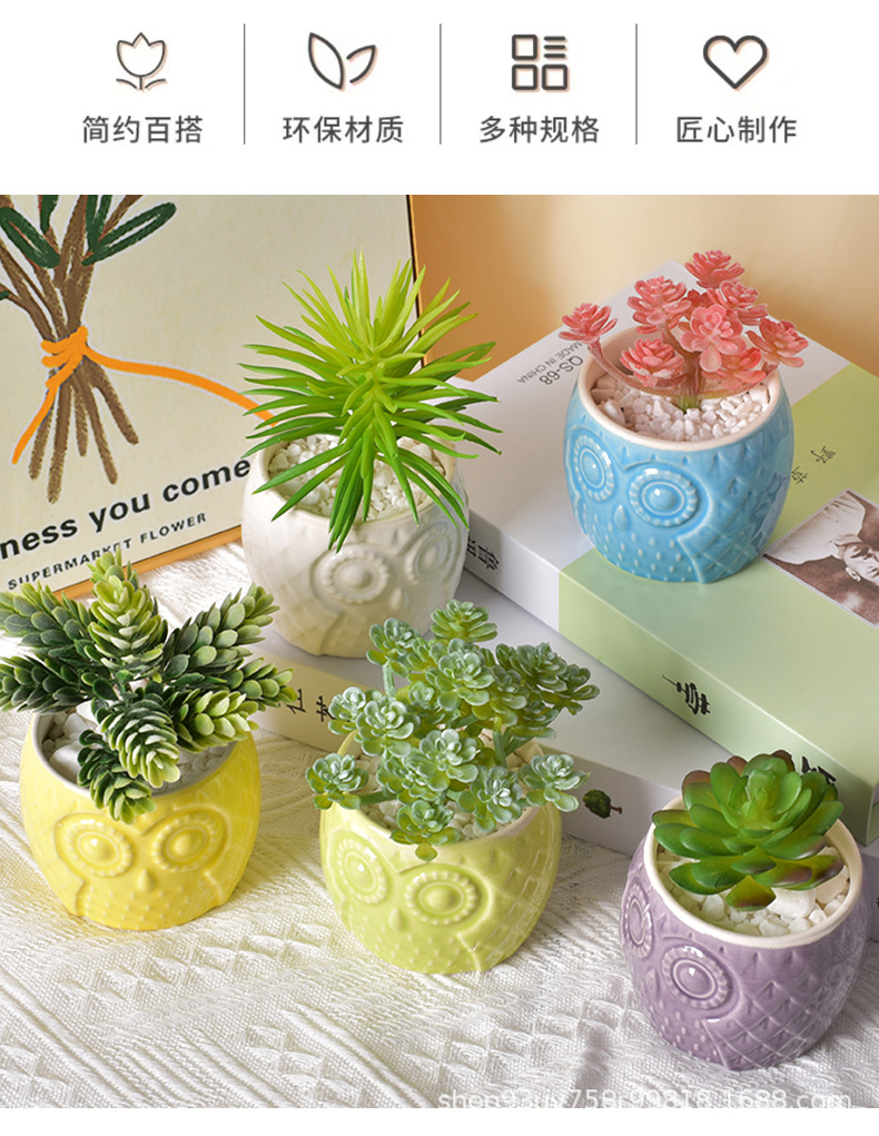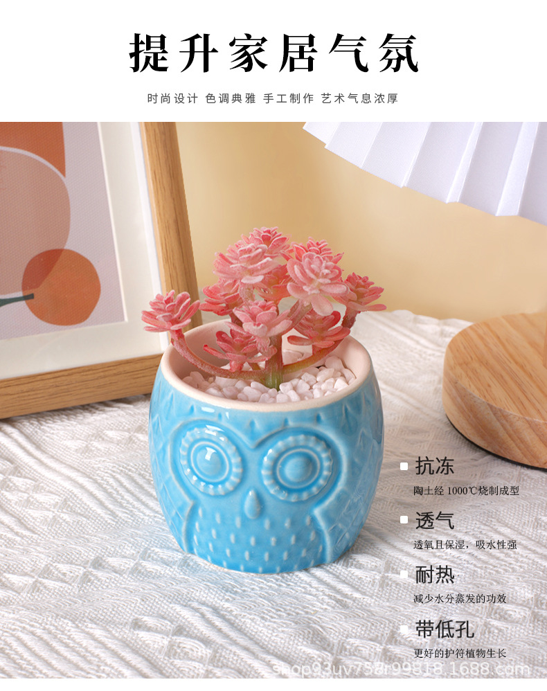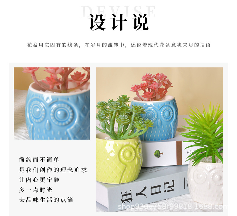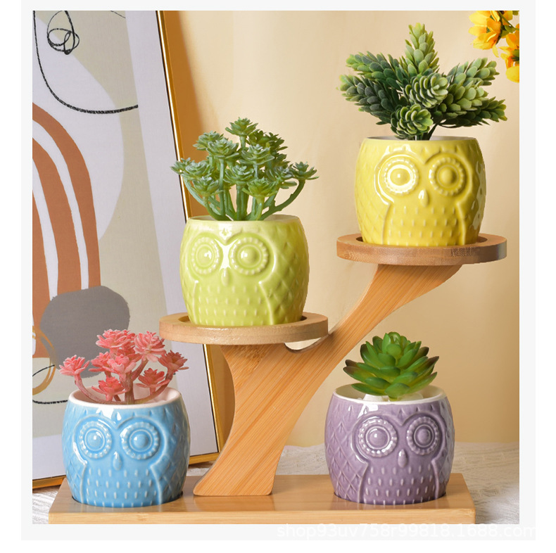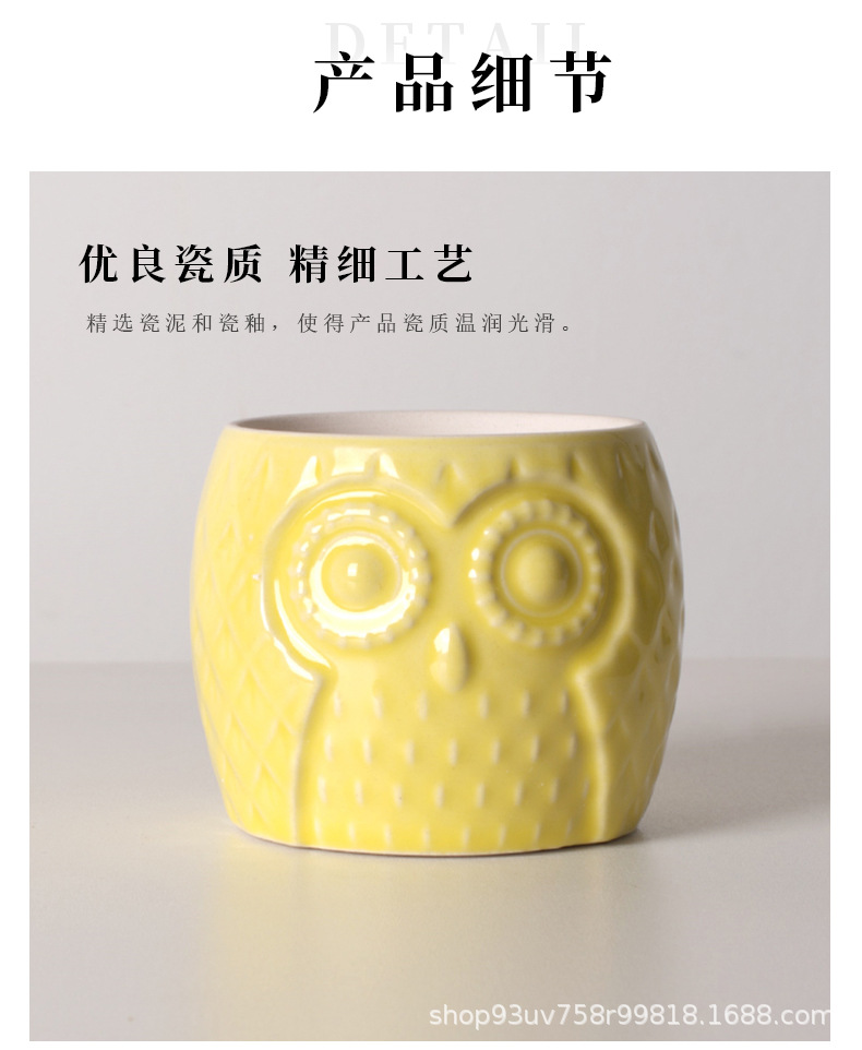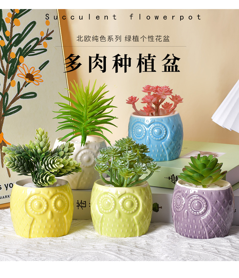 創造性現代シンプルな陶磁器植木鉢クロスボーダーアマゾン園芸フクロウ動物純色盆栽多肉花