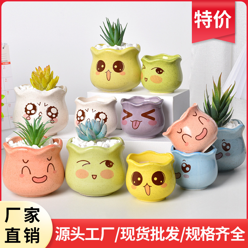 セラミック家庭園芸ポット北欧インクリエイティブ漫画多肉植物植木鉢マカロン鉢植え組み合わせ植木鉢卸売