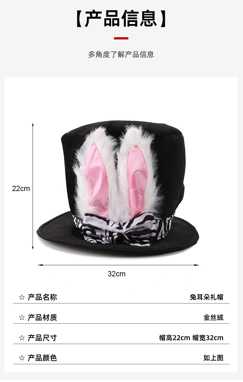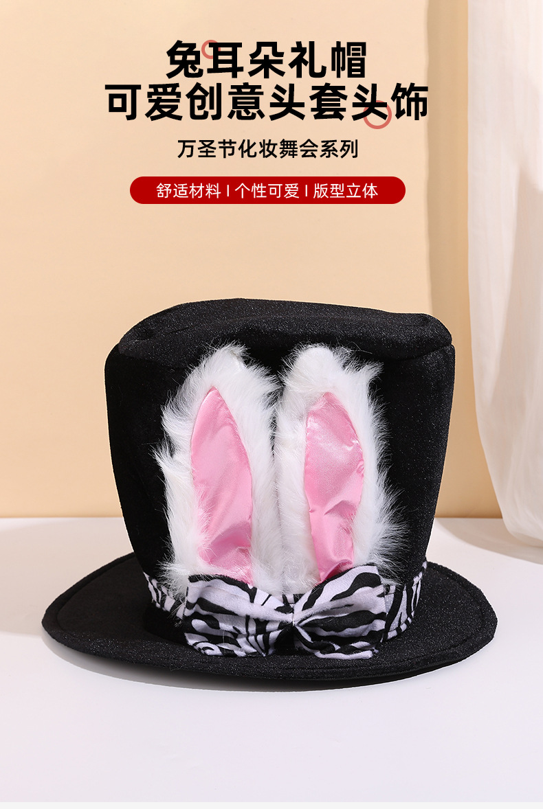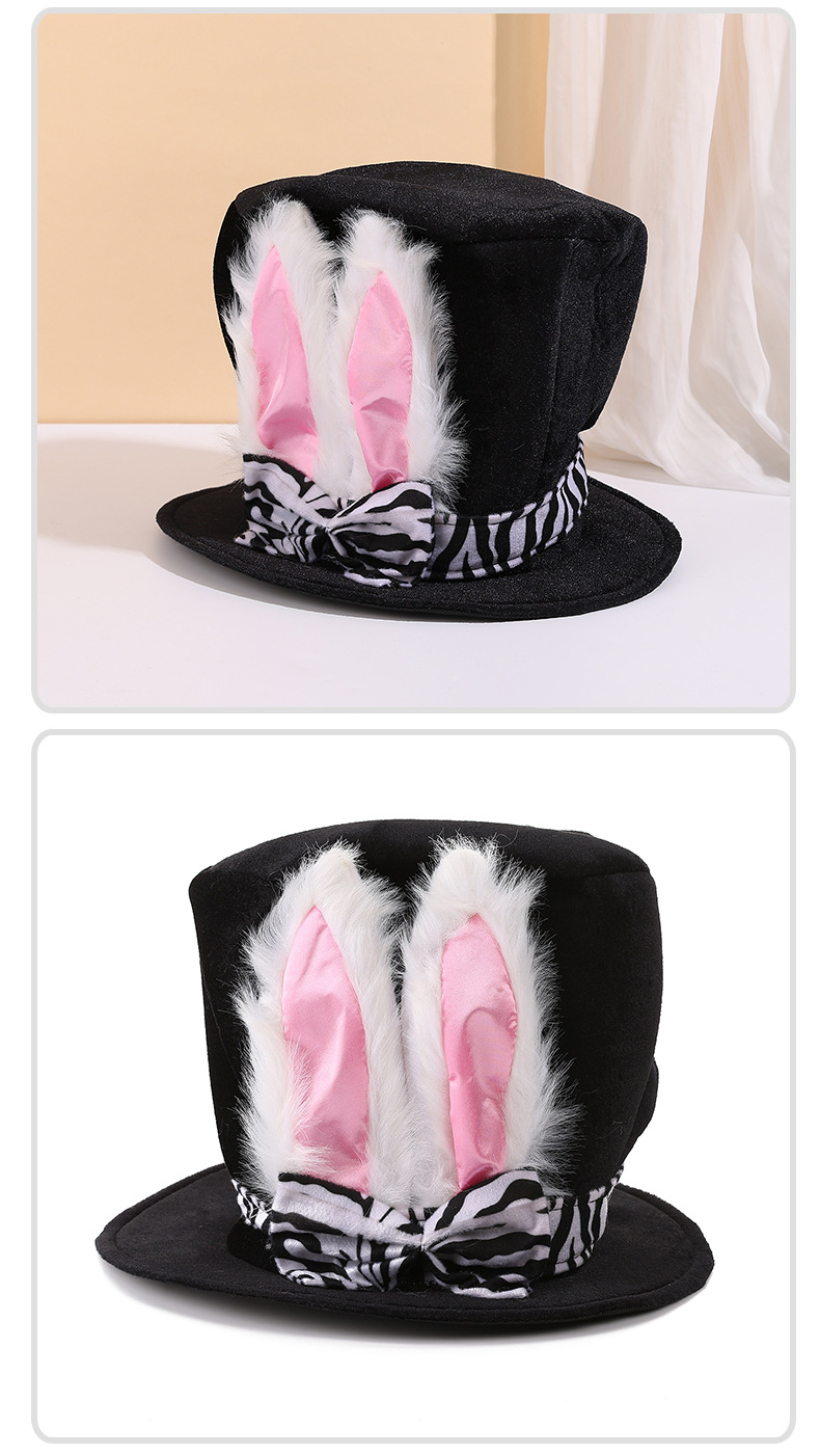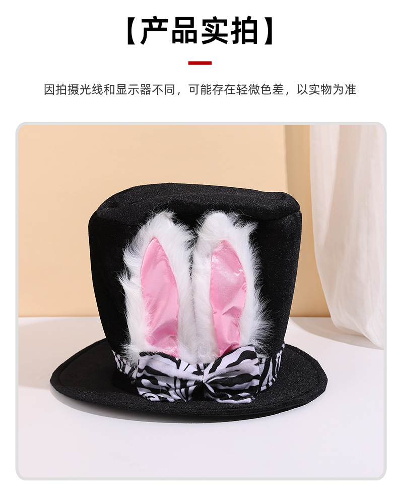 跨境派对丝绒帽子 毛绒兔耳朵高帽 复活节cosplay装扮道具兔耳帽