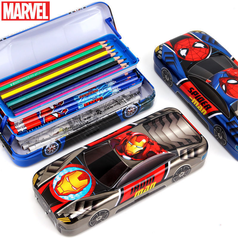 ディズニー雪氷スパイダーマンブリキ文房具箱機関車頭小型自動車バスミッキー子供鉛筆ケース男