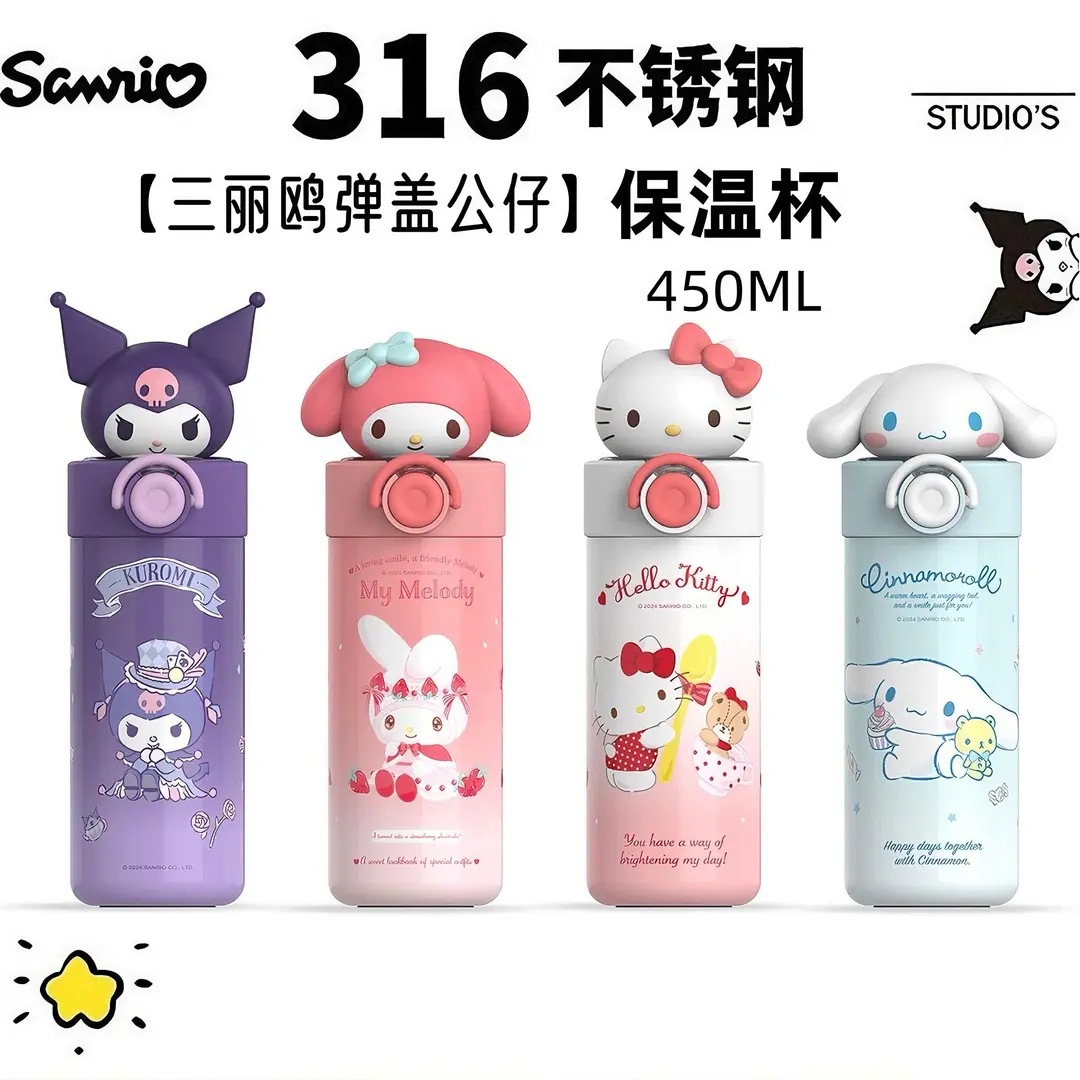 サンリオ子供用魔法瓶カップ 316 ステンレス鋼バネ蓋ストローカップ女子校生特別なケトル学生ウォーターカップ