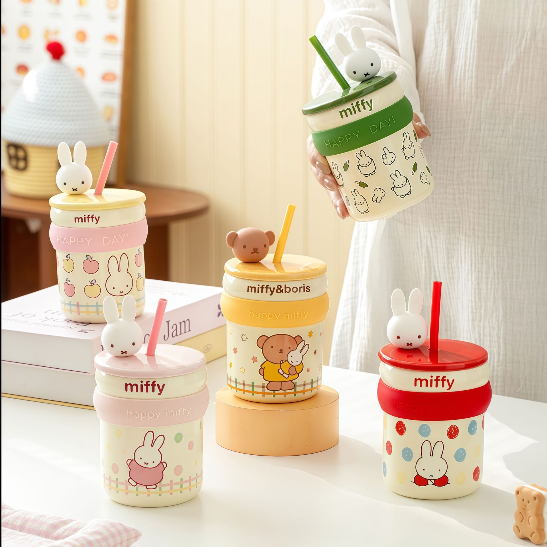 MIFFY米菲带吸管陶瓷杯办公通勤马克杯家用呆萌学生上班族咖啡杯