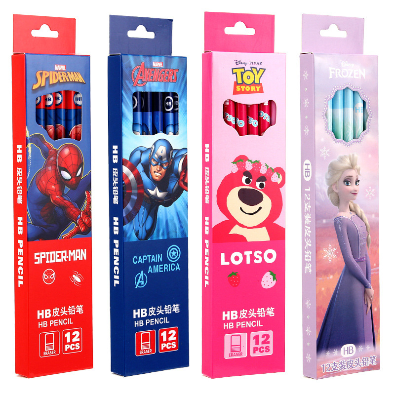 ディズニー マーベル ボックス入り鉛筆 HB鉛筆 丸軸 六角軸 穴あき鉛筆 小学生用筆記鉛筆 子供用