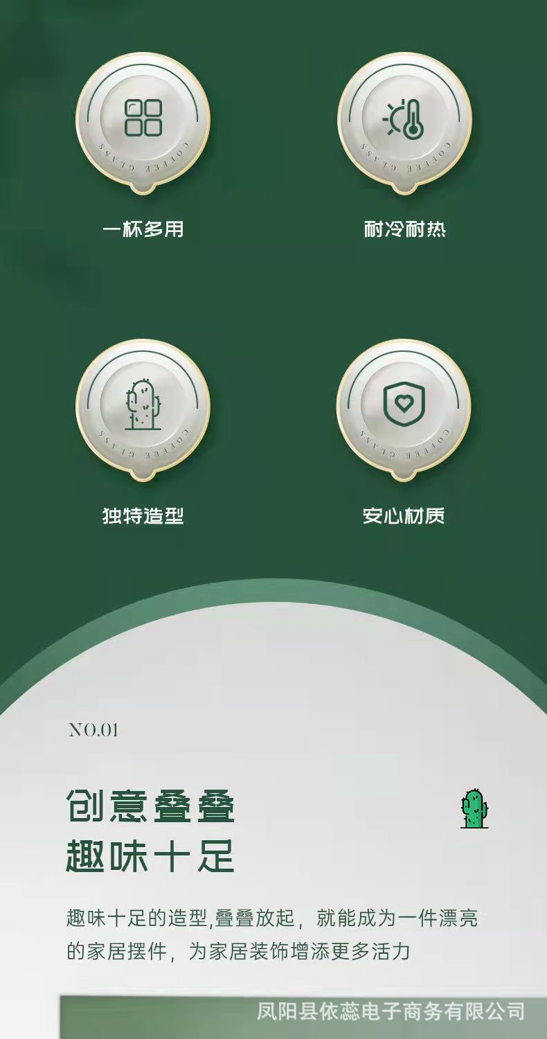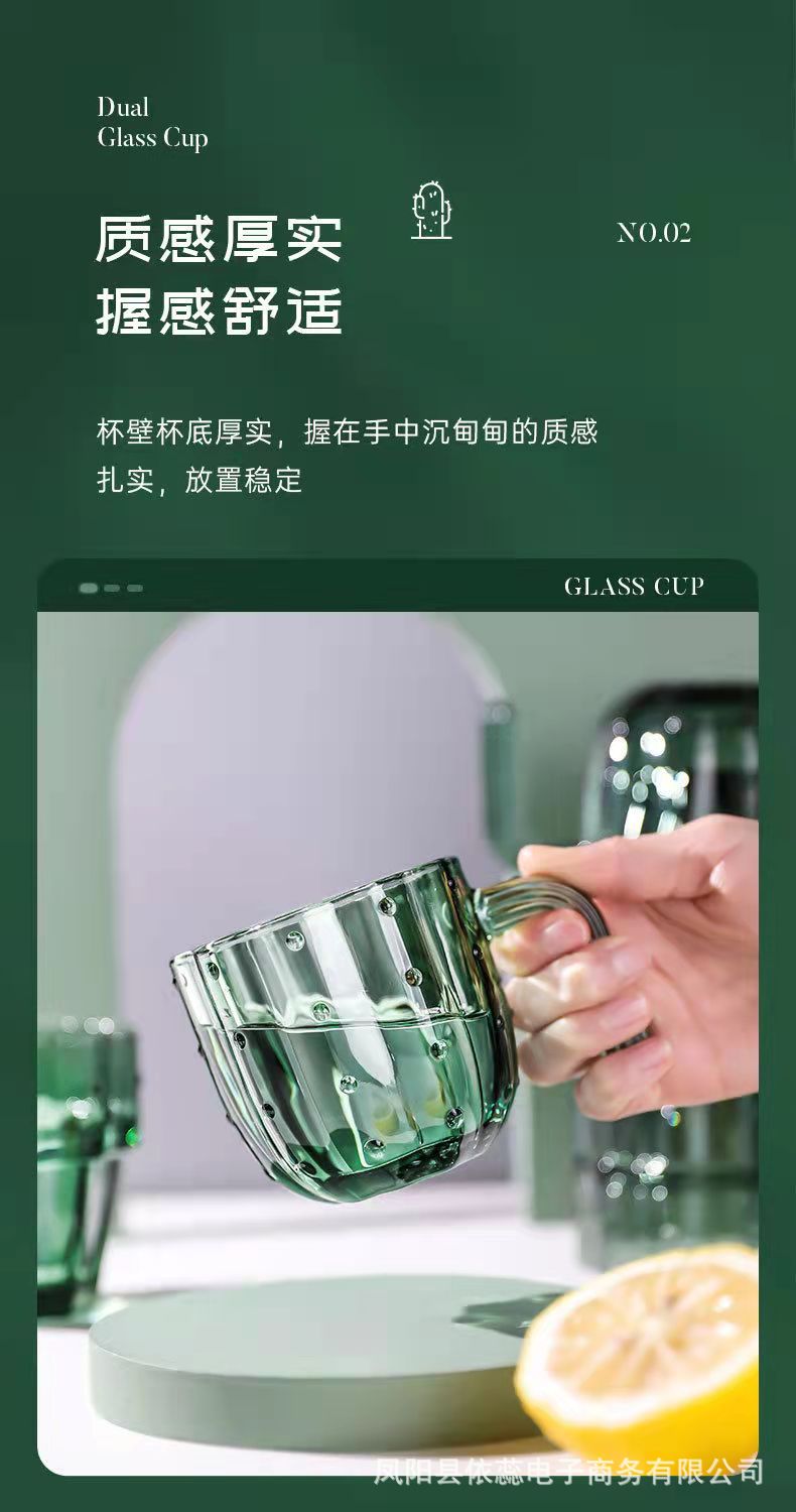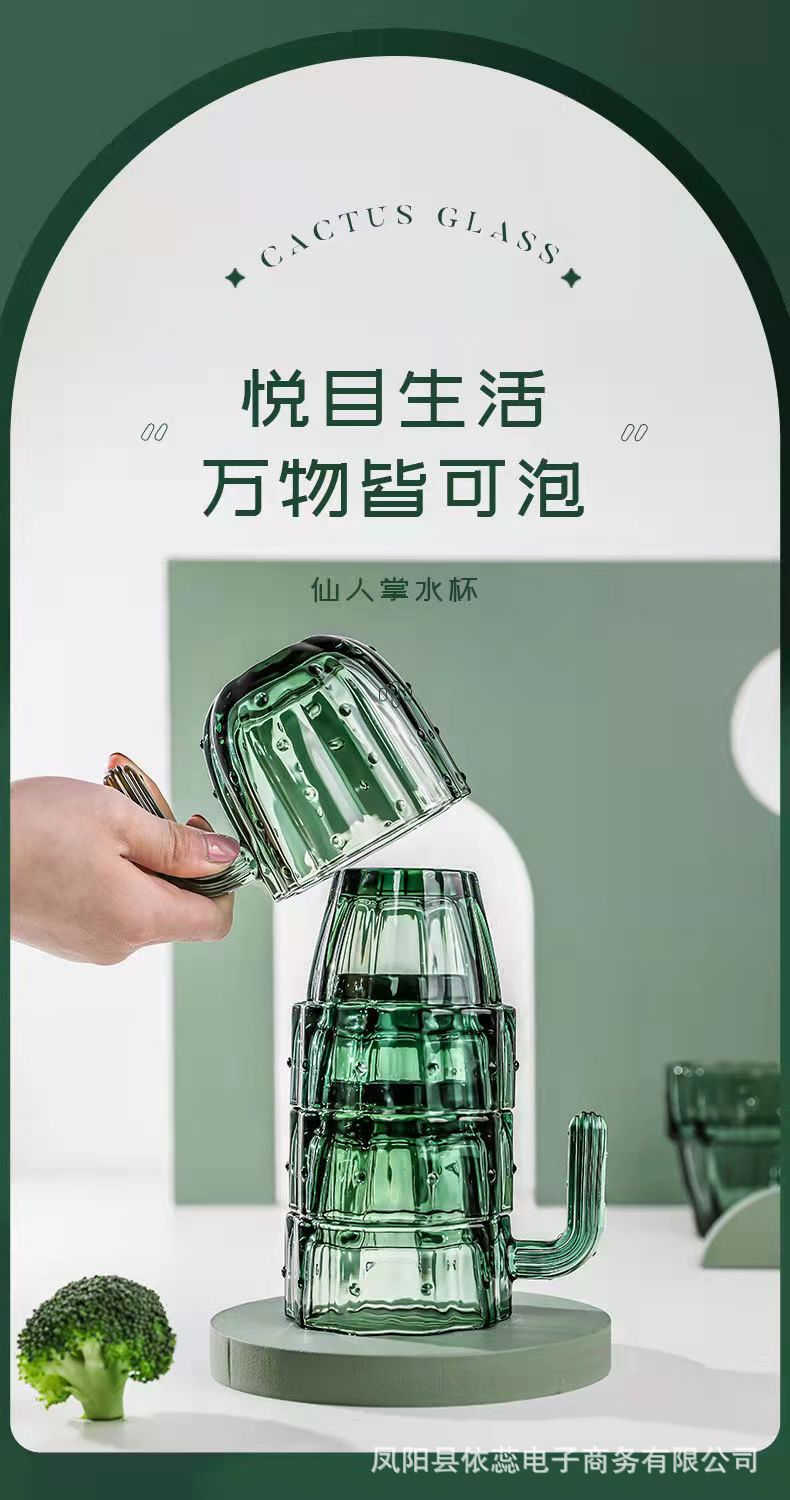 高颜値ins風墨緑冷水具サボテンカップ家庭用リビングカップ重ねコップグラス