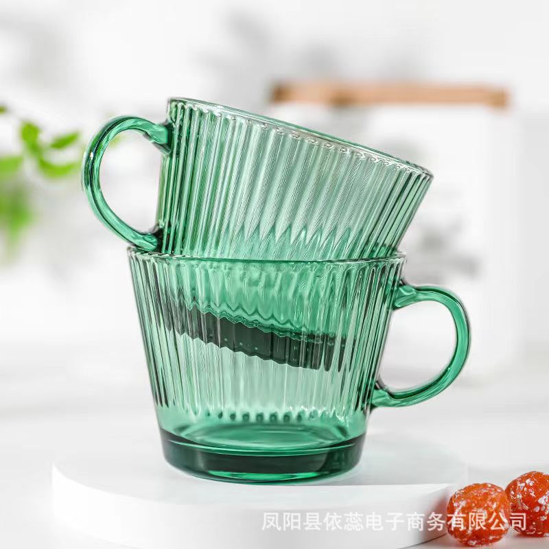 Ins風墨緑朝食グラス原色ガラスバンド取っ手大容量コップ家庭用牛乳カップネット赤