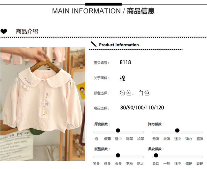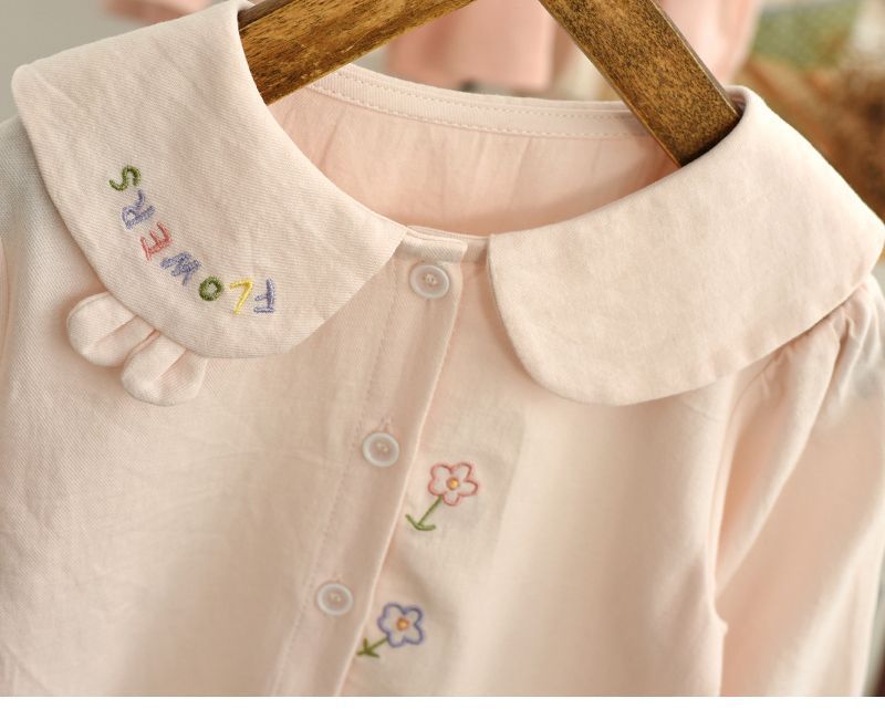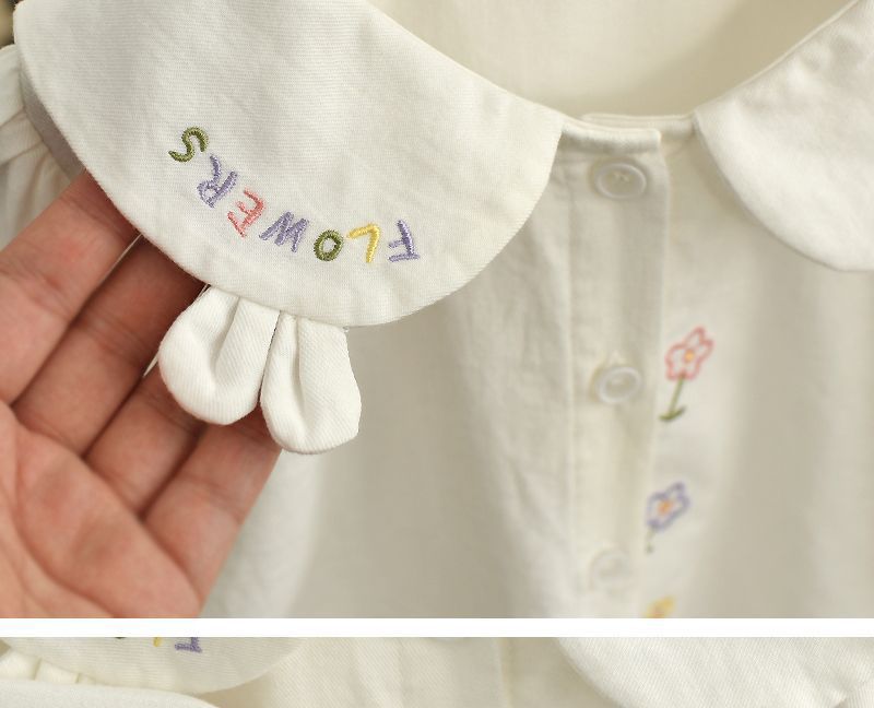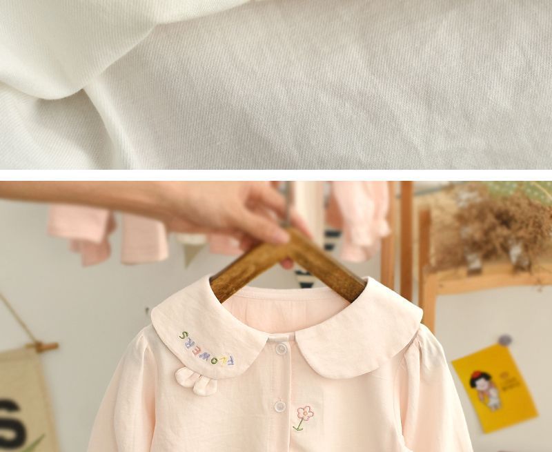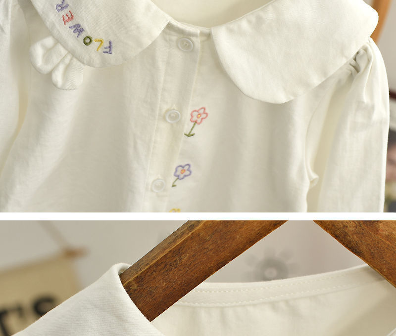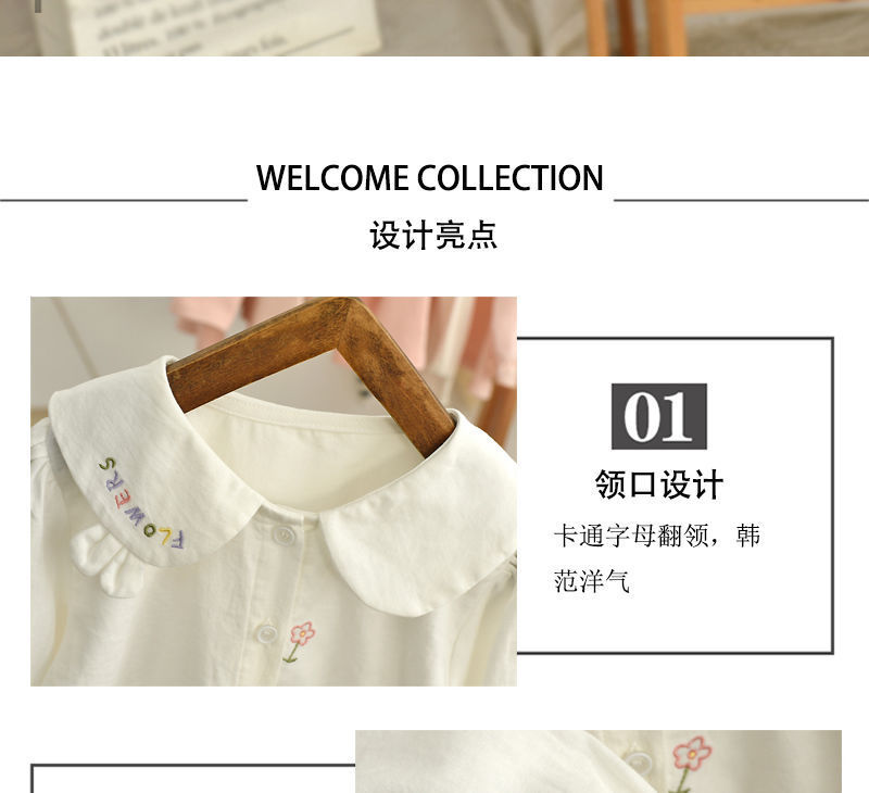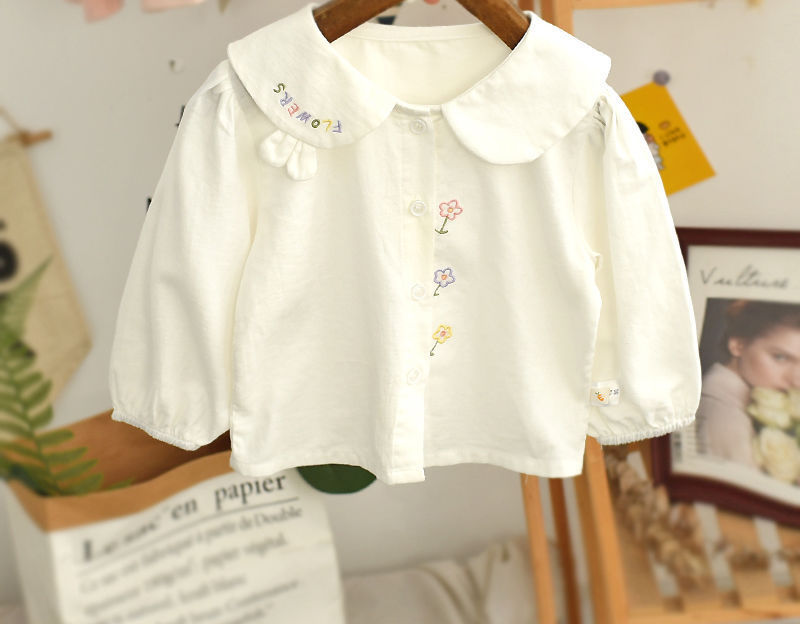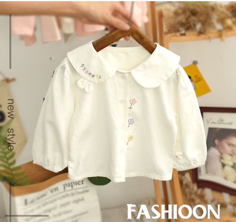 春と秋の女の子の子供服のシャツの赤ちゃんの洋気の子供の個性の潮ネットの赤い流行の韓国版の花の子供の襟の白いシャツ