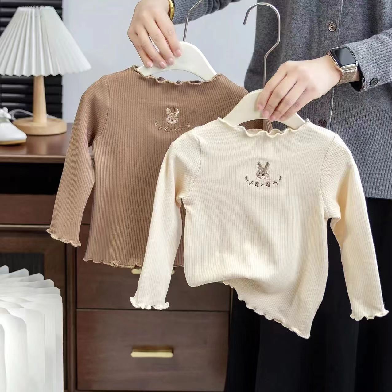 春と秋の女の子の子供服の底のシャツの赤ちゃんの洋気の子供の個性の潮の韓国版の漫画の花の刺繍の木の耳元のtシャツ